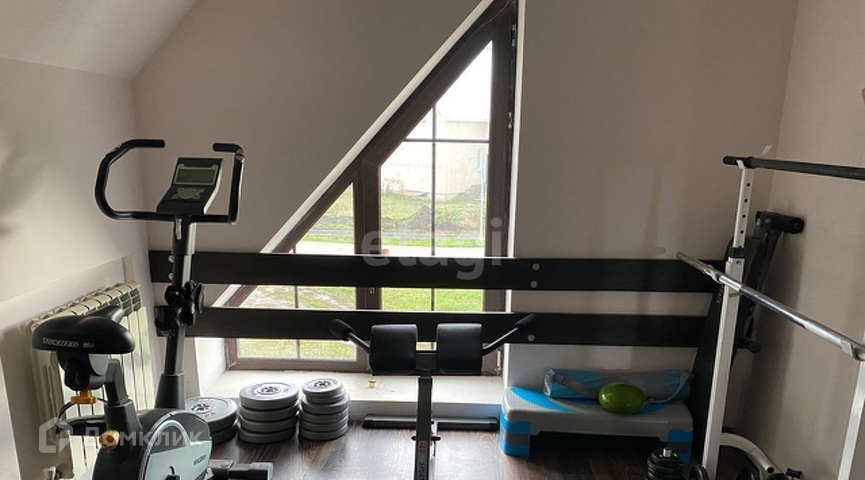 Второй этаж: студия общей площадью 80 кв.м с отдельным совмещенным санузлом, двумя большими гардеробными и кладовкой. Предусмотрена возможность установки печи-камина при желании. На втором этаже тренажерный зал. В доме большие красивые окна. На солнечной стороне двойной стеклопакет с защитным от ультрафиолета слоем. Летом не так жарко, зимой тепло, есть балкон.