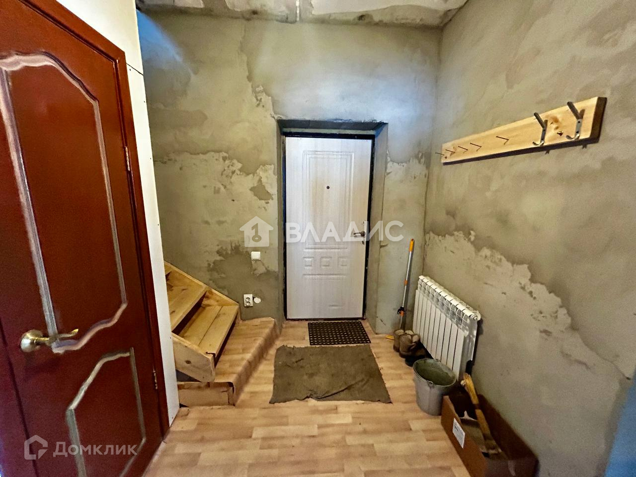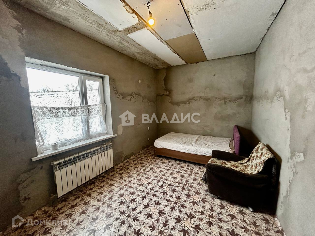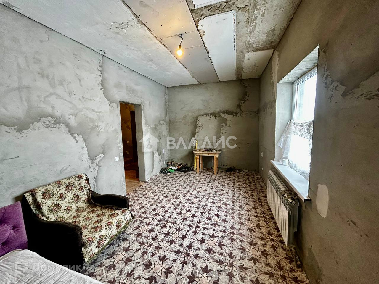 Внутреннее состояние дома: общая площадь 77м2. В доме 1 спальня на первом этаже и свободная планировка на втором, кухня 12.1, коридор, совмещенный с/у. На  полу линолеум. Стены отштукатурены. Окна ПВХ.