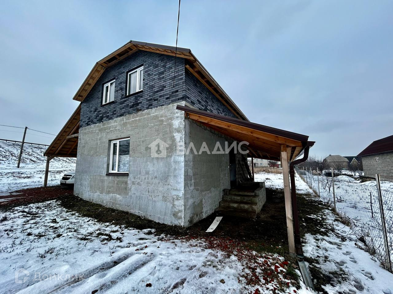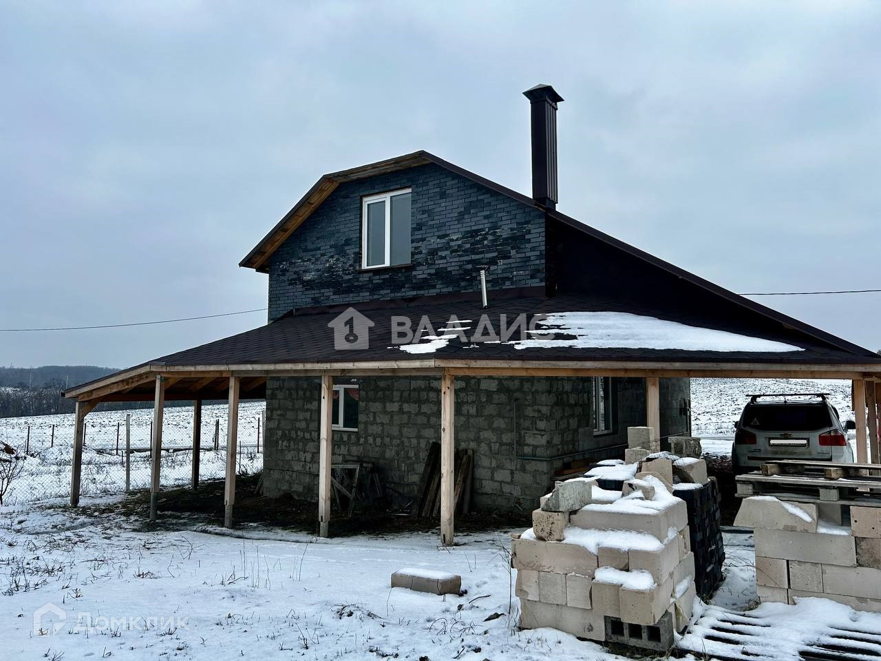 Продаётся дом мансардного типа на участке 11 соток в 10 минутах езды от города. Дом выполнен из блока, мансарда из кирпича. Фундамент ленточный. Газ, вода центральная, электричество заведены в дом, канализация - септик. Крыша выполнена из мягкой кровли. Навес для машины.