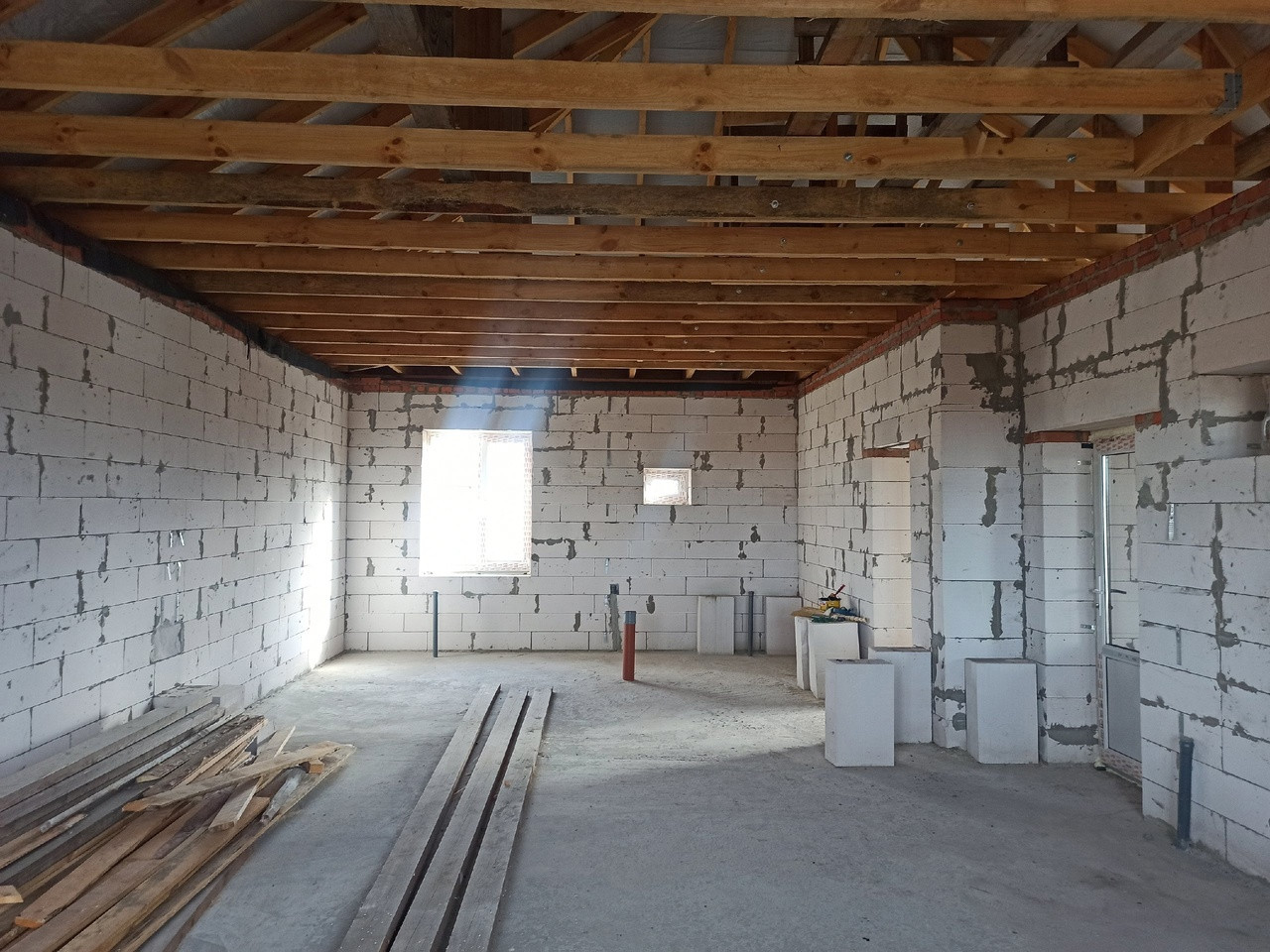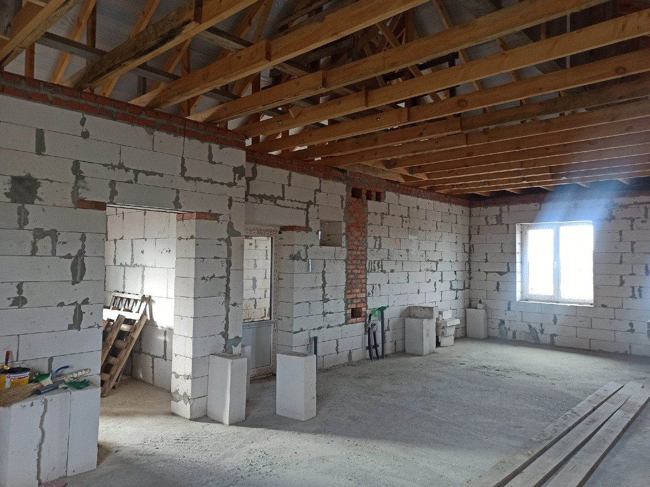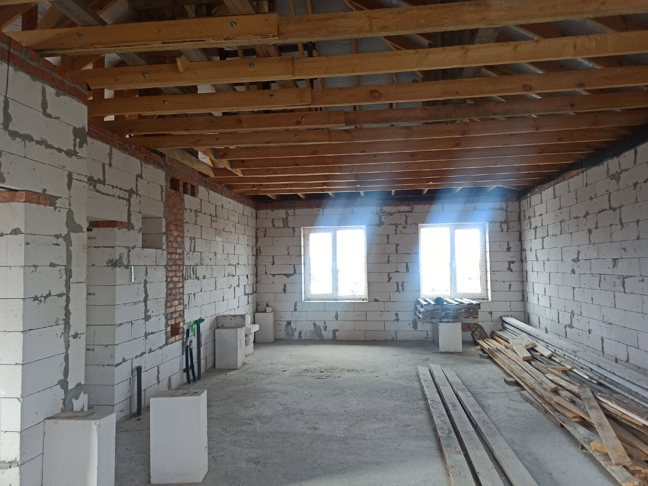 ОБЩЕЕ СОСТОЯНИЕ: черновая коробка дома с закрытым контуром. Пластиковые окна и хорошие входные двери. В