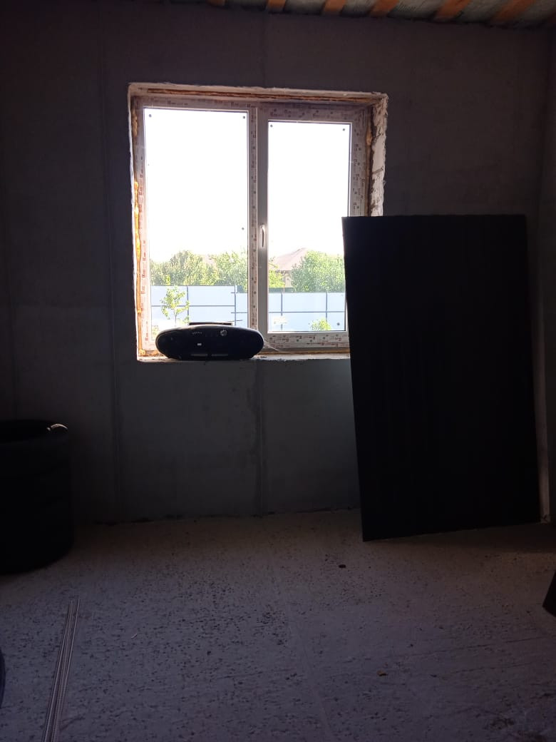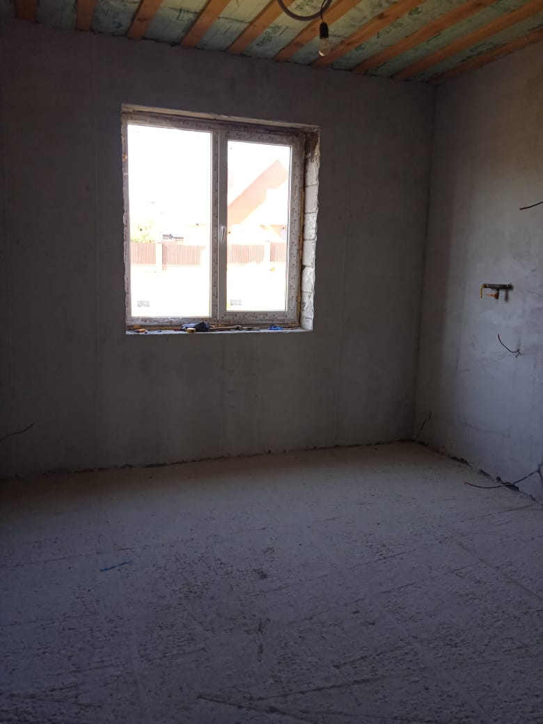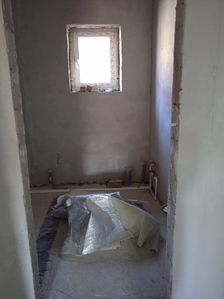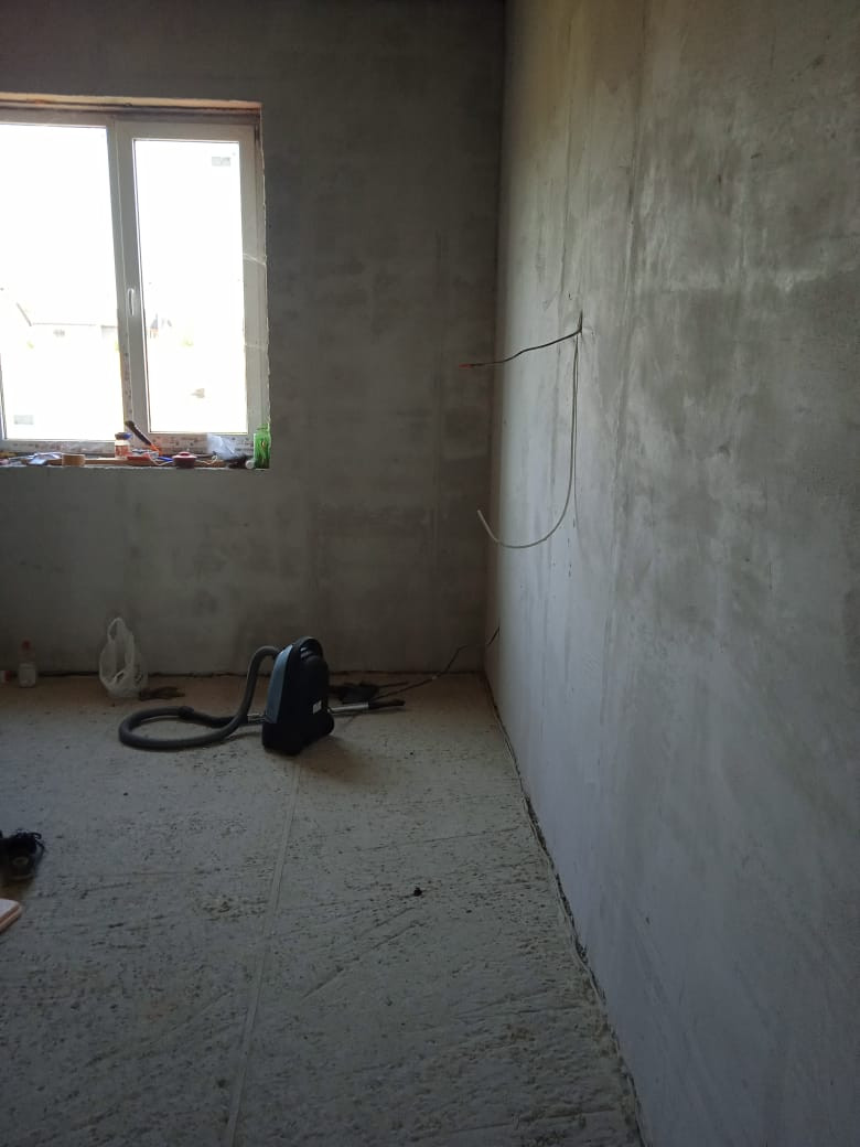 Полы выровнены, залиты черновой стяжкой. Стены выровнены, оштукатурены.