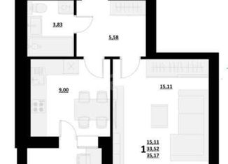 1-комнатная квартира на продажу, 35.2 м2