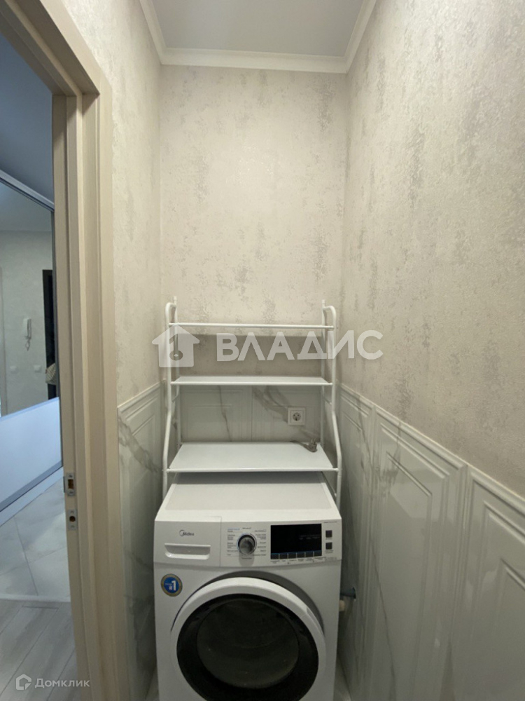 Санузел раздельный в современной плитке. Имеется новая стиральная машина.