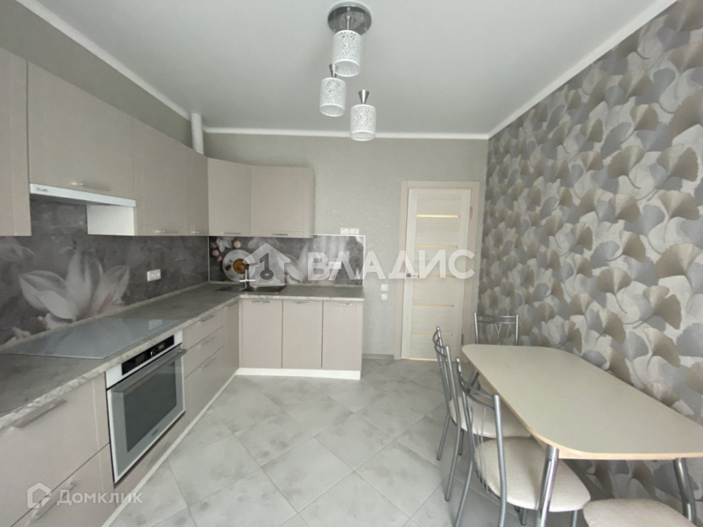 На кухне имеется кухонный гарнитур, холодильник, эл/плита, вытяжка и духовой шкаф. На полу постелен керамагранит и подключен тёплый пол (электрический).