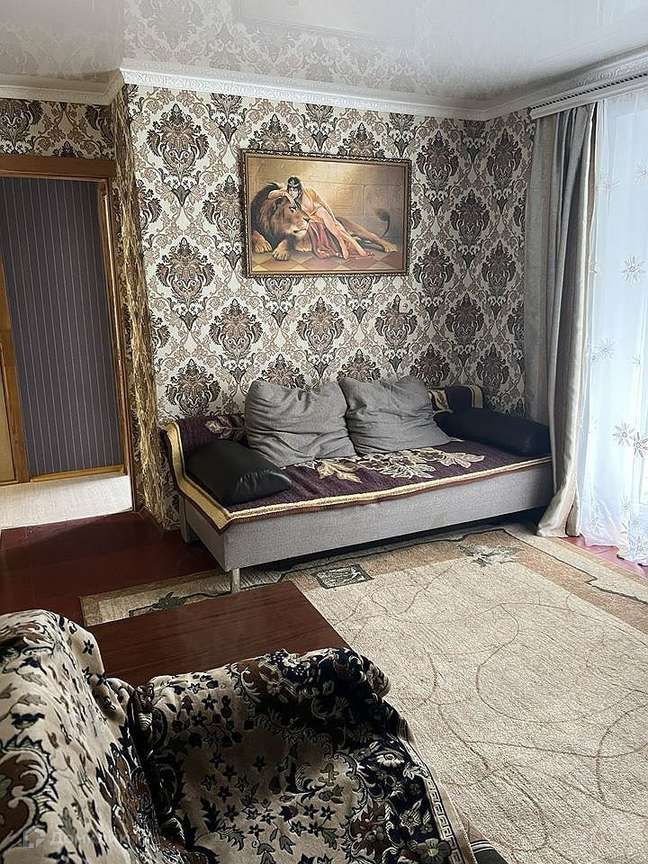 Из мебели имеется : диван,стенка,кровать,шкаф,кухня
