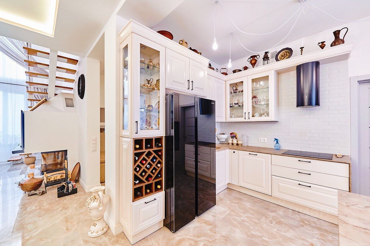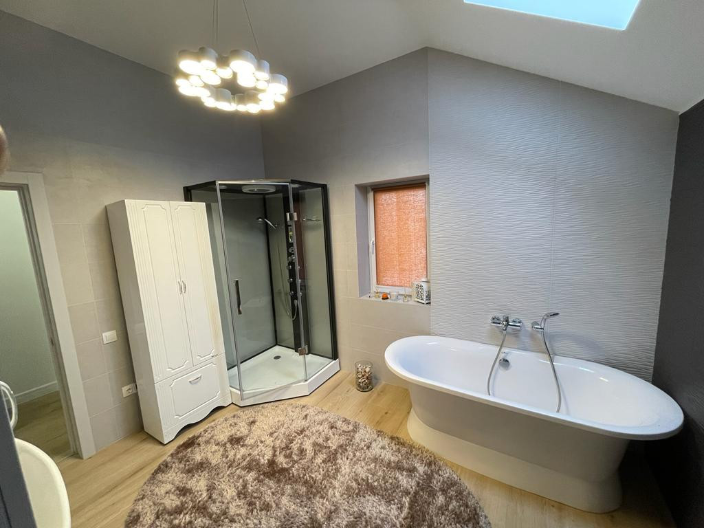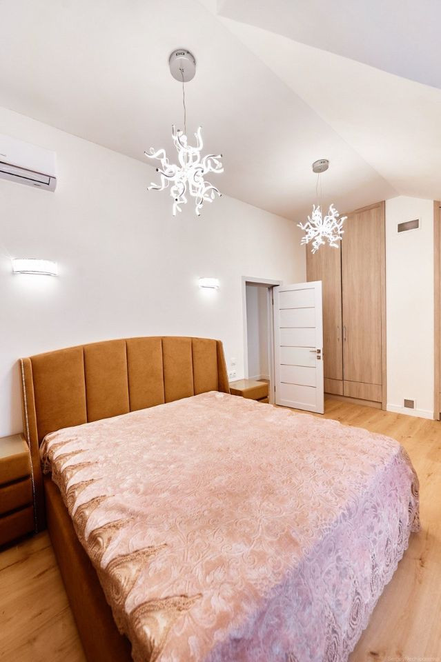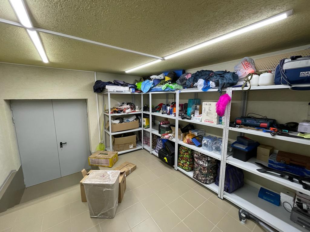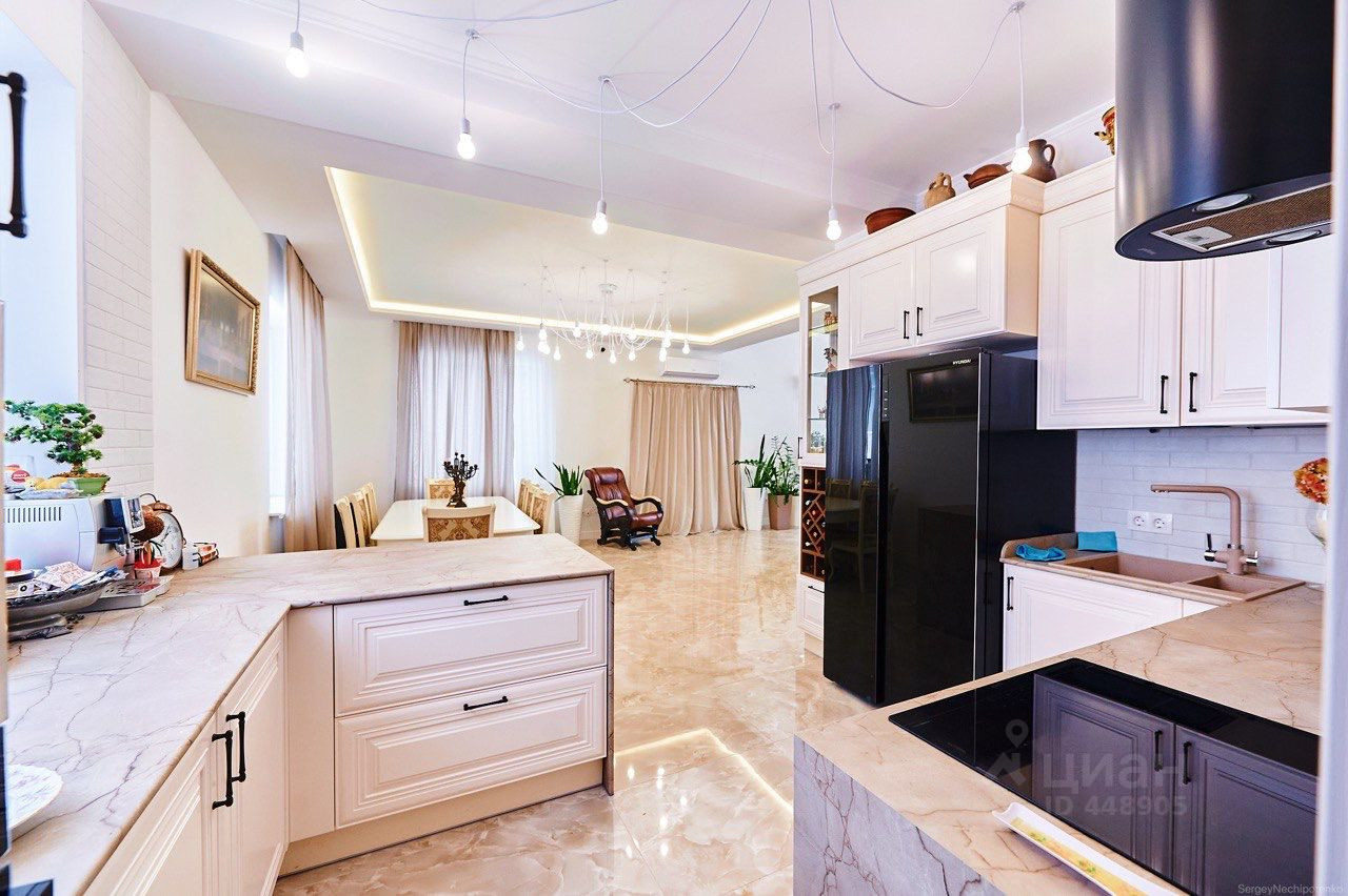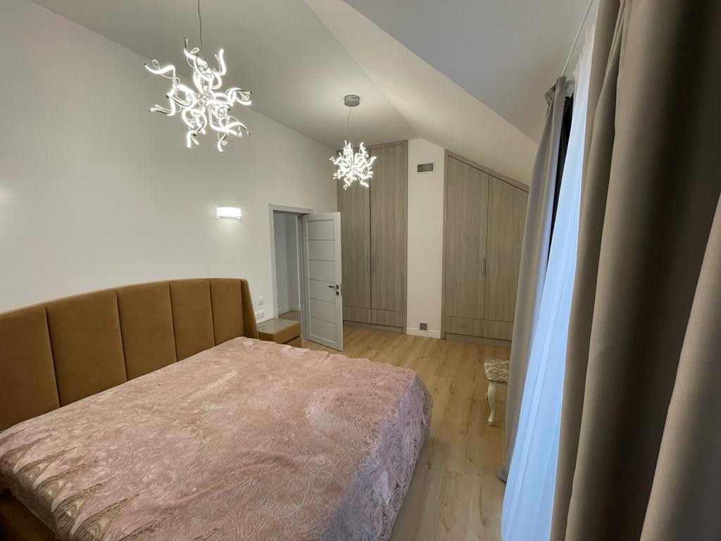 Двор с автоматическими воротами, вымощен тротуарной плиткой. Дом состоит из трех этажей: Цокольный этаж: Отапливаемый, тех помещение для стирки и глажки, большая гардеробная комната, зона хоз. хранения, подвал 30 кв м., насосная с емкостью 1,5 м куб. и системой фильтрации. Имеется выход в гараж. 1-й этаж: уютная гостиная с натуральным камином, санузел с душевой, прихожая, кухня-столовая с выходом на террасу и на летнюю площадку, топочная с кладовкой и бойлером на 300 л воды, гостевая спальня. 2-й этаж: 3 спальни, большой санузел ванной и душем, кладовка. К дому примыкает гараж на 4 машины с зоной хранения инструментов и колёс. В гараж выведена горячая вода и сделан слив. Дом уникален по своему комфорту, построен по эксклюзивному архитектурному проекту. Просторные светлые комнаты с удобной планировкой, индивидуальным дизайном, в светлом цветовом решении. Итальянская кухня с техникой ведущих мировых производителей. Камин облицован белым мрамором. Первый и второй этаж соединяет дубовая лестница. Высота потолков от 3,5м. до 7 м. Гостиную украшает эксклюзивная 3-х метровая люстра выполненная на заказ. Экономное отопление. Теплый пол на всем первом этаже.
