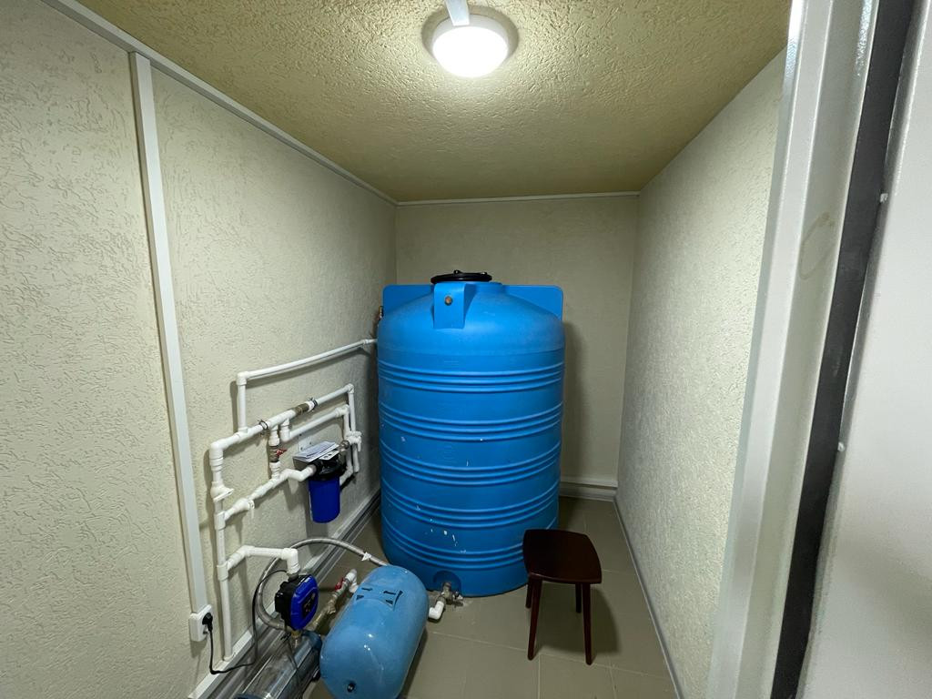 Материалы отделки плитка керамогранит Италия, сантехника Италия, экологически и гипоалергенная краска. Дом построен из натурального камня ракушняк, утеплён по финской технологии 10 см, покрыт немецкой фасадной штукатуркой и окрашен Бойлексом (гарантия 45 лет). Заведены: свет 3 фазы, собственная вода ( скважина глубиной 42 м), газификация района в 2022-2023 году. План газификации уже утверждён. В доме вся разводка отопления выполнена с учётом подключения газового котла.