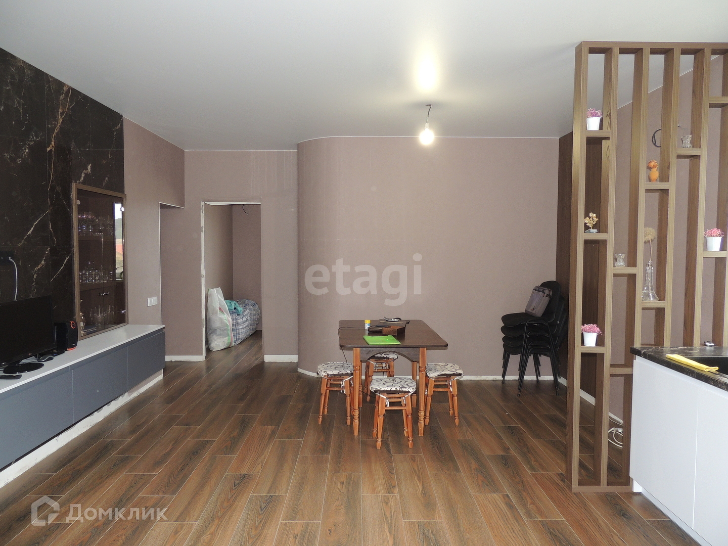 Дом 104 кв.м. Дизайнерская планировка и ремонт. Чуть чуть незакончен. Осталось установить двери и плинтуса. Отваливается электрическим котлом. В каждой комнате тёплые полы. Кухня-гостиная, три спальни, совмещенный сан. узел. котельная и коридор. С кухни выход на террасу. Ремонт сделан дорогой и качественный.
