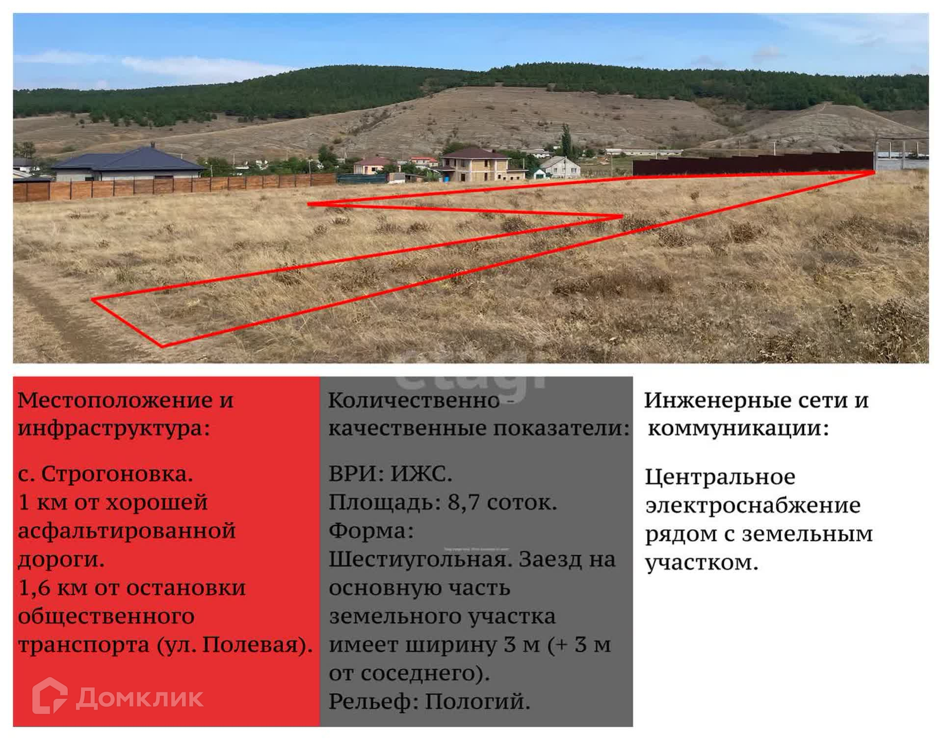 В продаже земельный участок под ИЖС площадью 8,7 соток в Строгоновке с привлекательным местоположением!!!