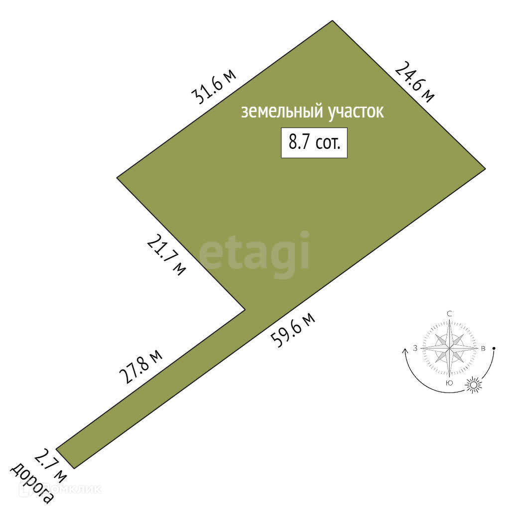 Площадь участка 8.7 сот.