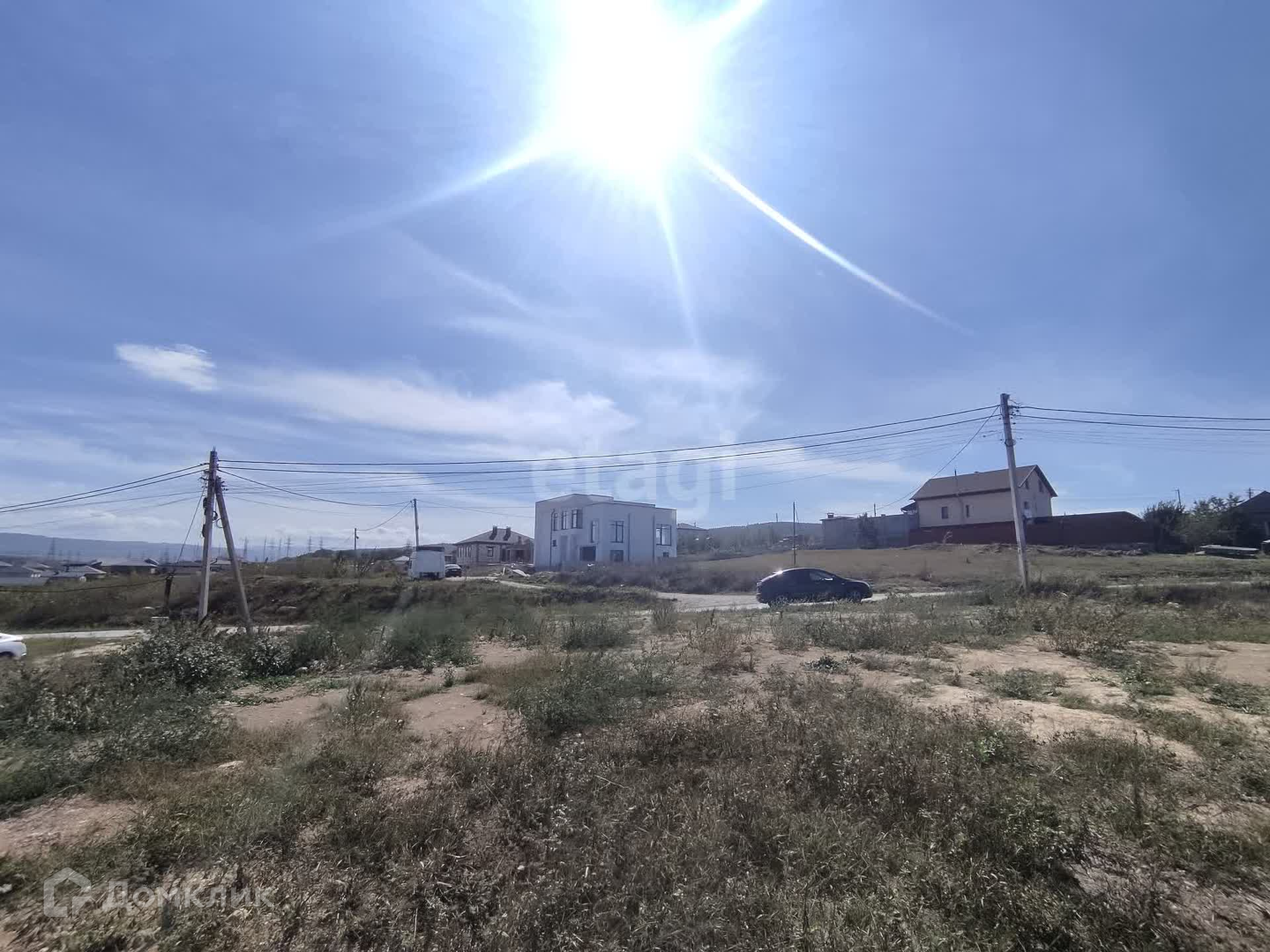С участка открывается красивый вид на посёлок и горы.