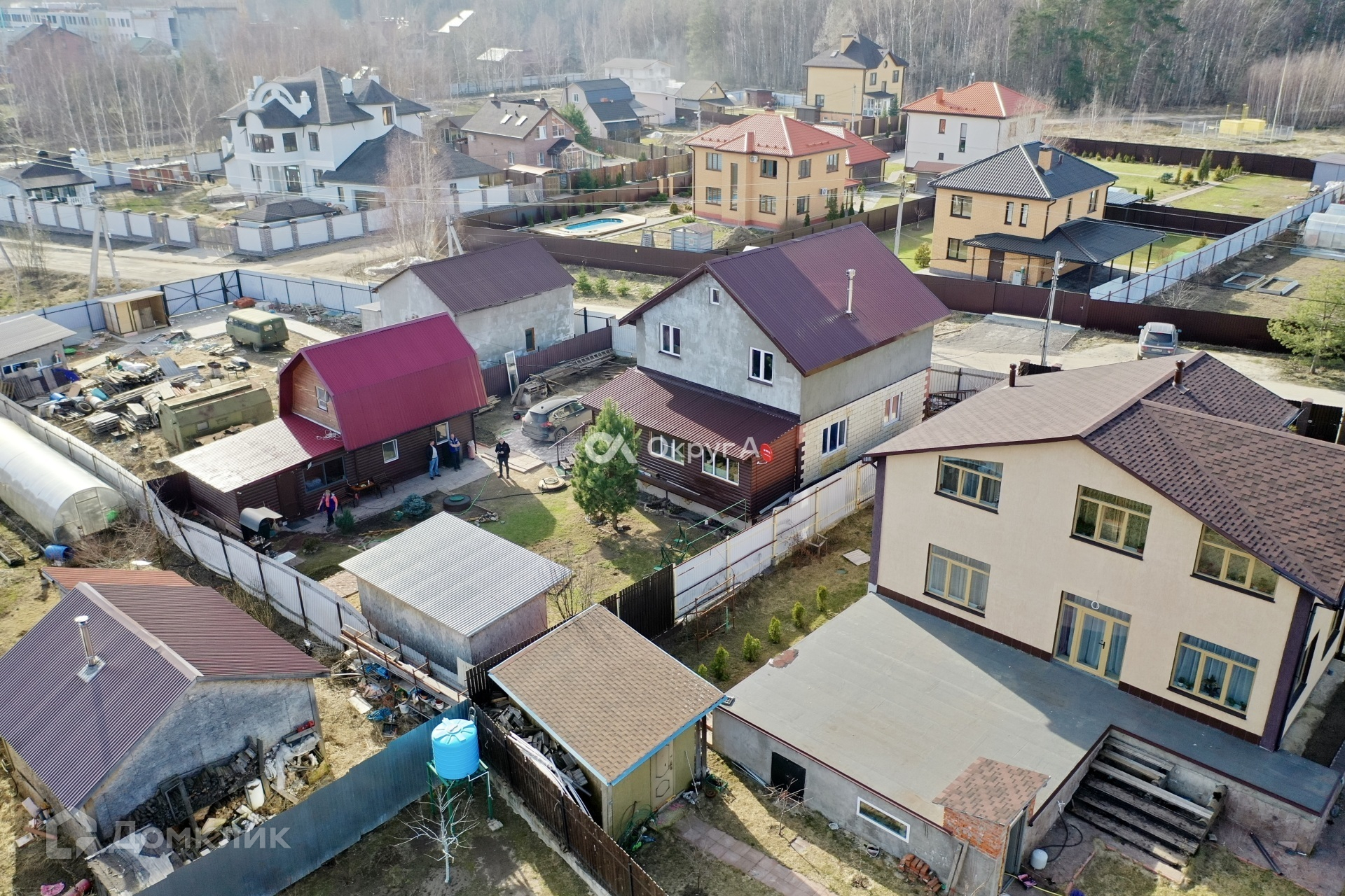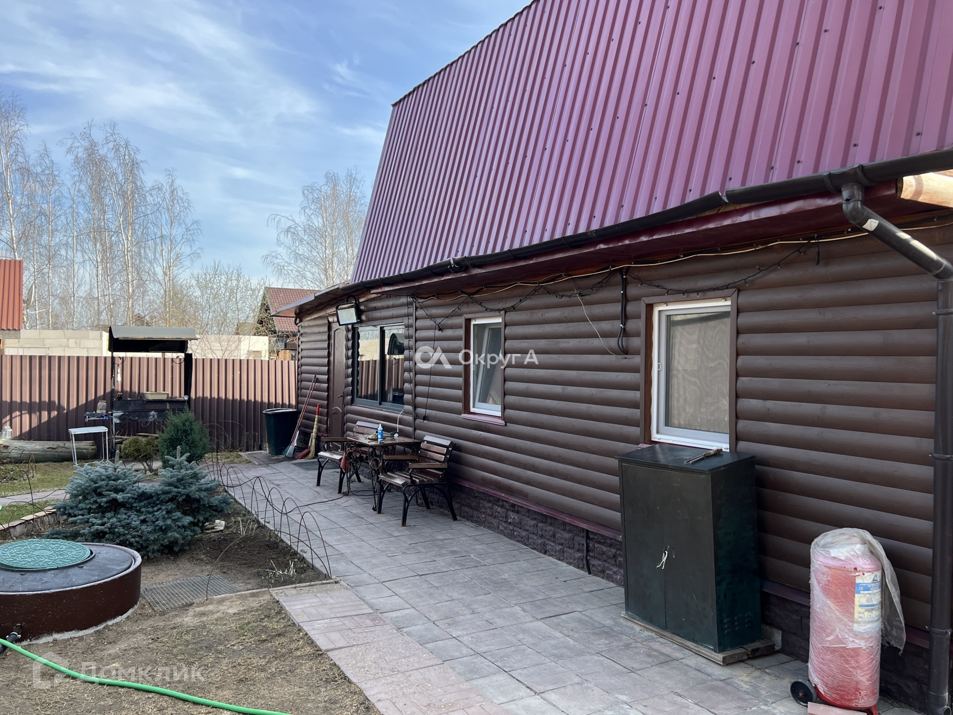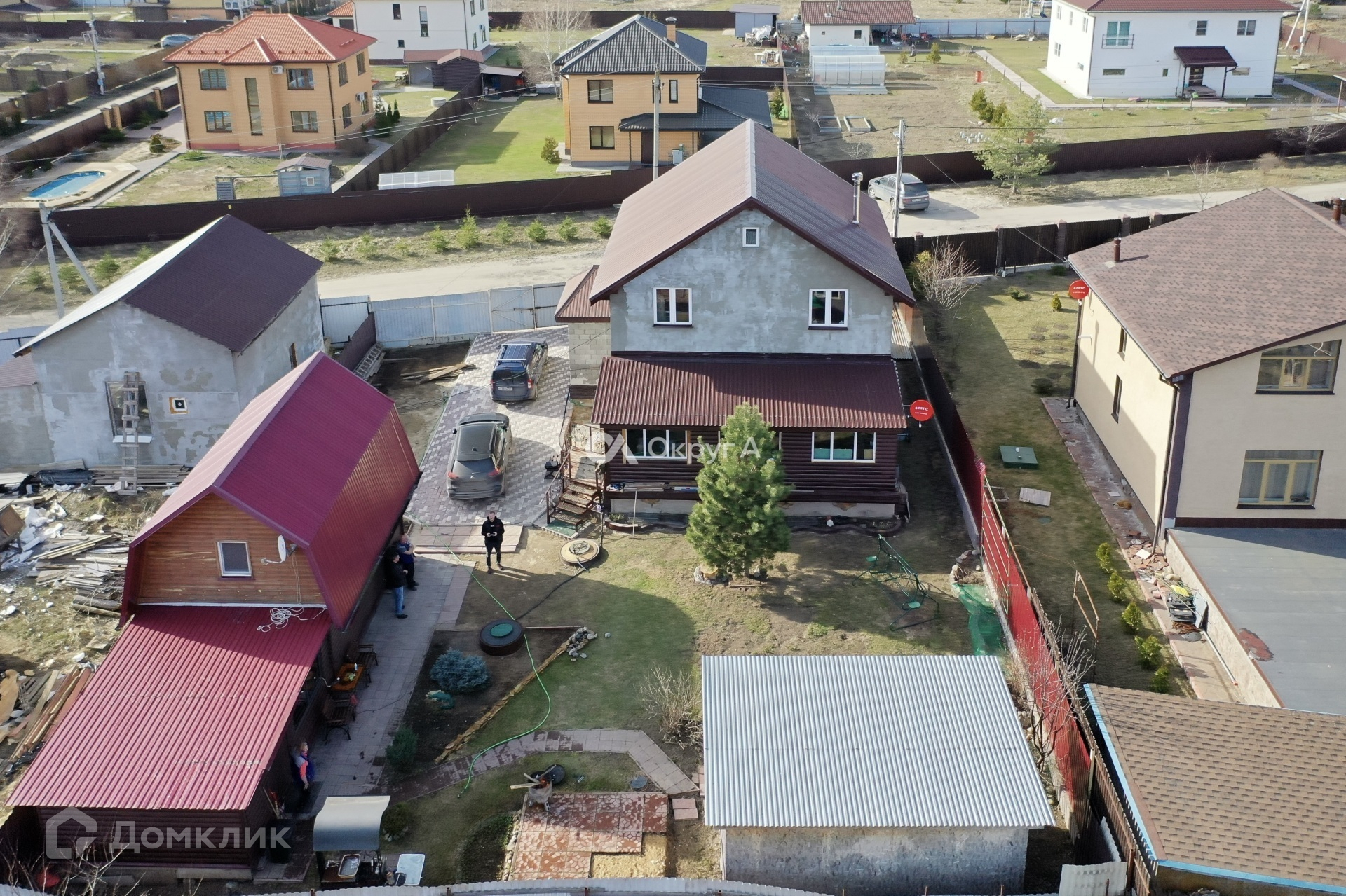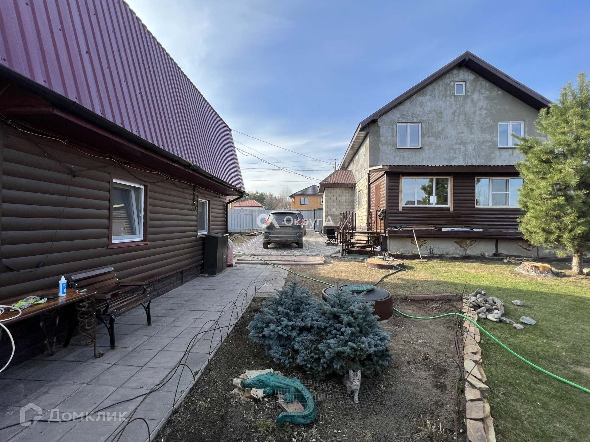 Участок 6 соток, правильной прямоугольной формы с элементами ландшафтного дизайна. По периметру установлен капитальный забор на собственном фундаменте, оборудовано парковочное место для нескольких автомобилей. Придомовая территория выложена брусчаткой. Участок засеян газонной травой, имеются плодовые насаждения.