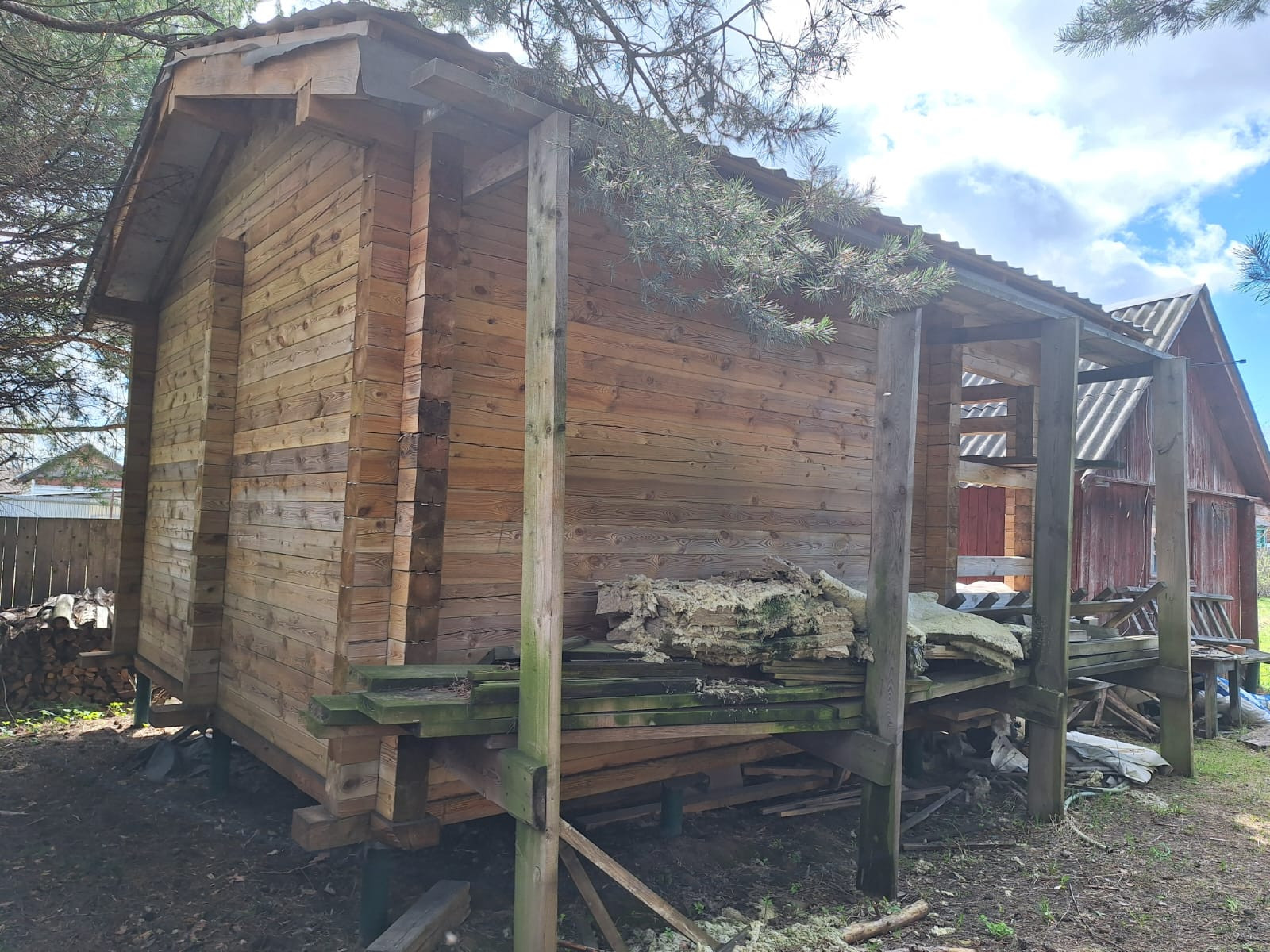 На участке две бани: действующая площадью 25 метров и новая сделана "под усадку" размером 6 на 6 метров, установлена печь.