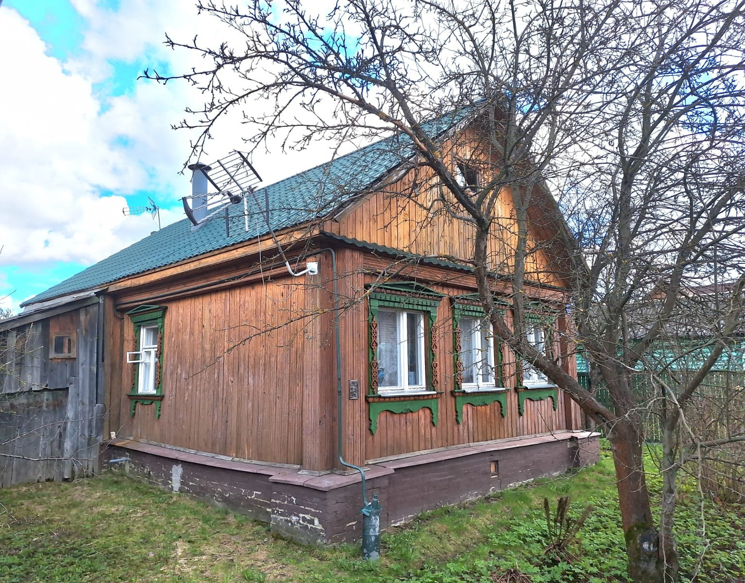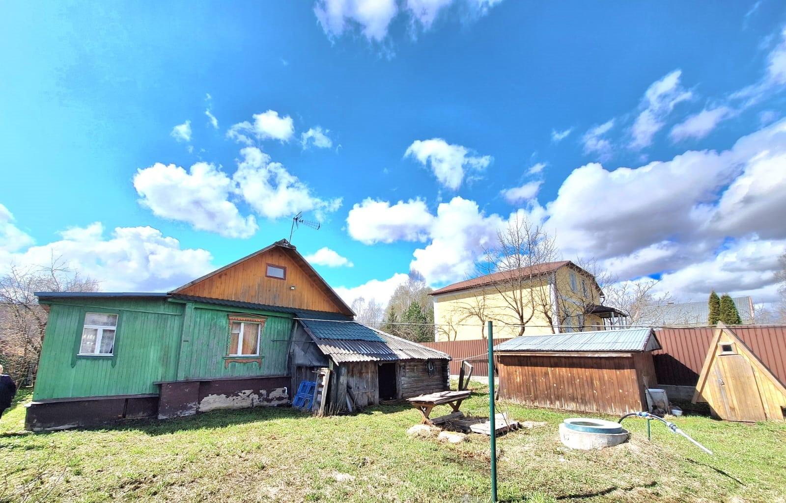 Дом жилой- газ, электричество, вода из скважины (около 50 метров глубина), канализационный колодец (кольца).