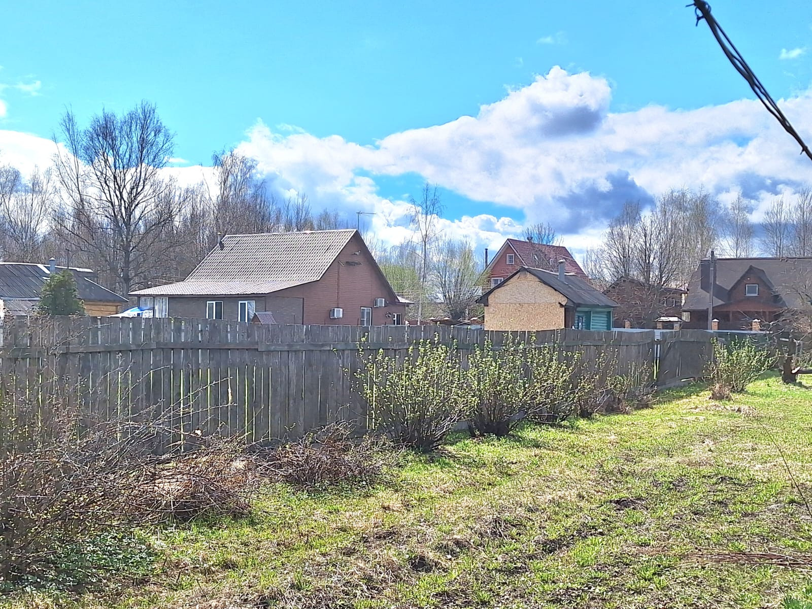 На участке плодовые деревья и кустарники.