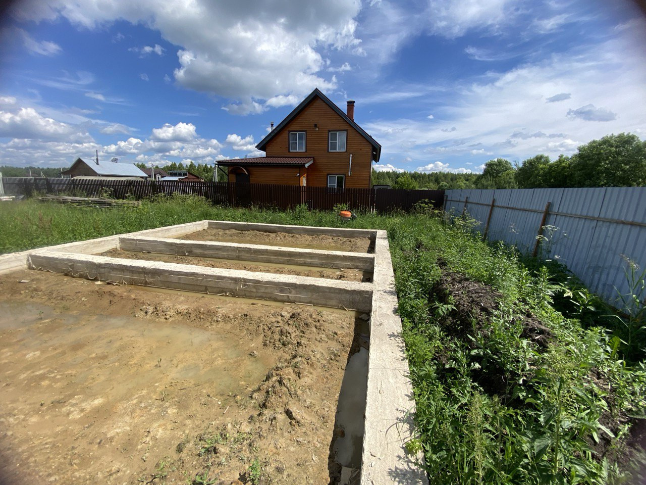 Выкопан колодец, трехуровневый септик с двумя ступенями переливами и стоит хозблок( бытовка) под различные нужды.