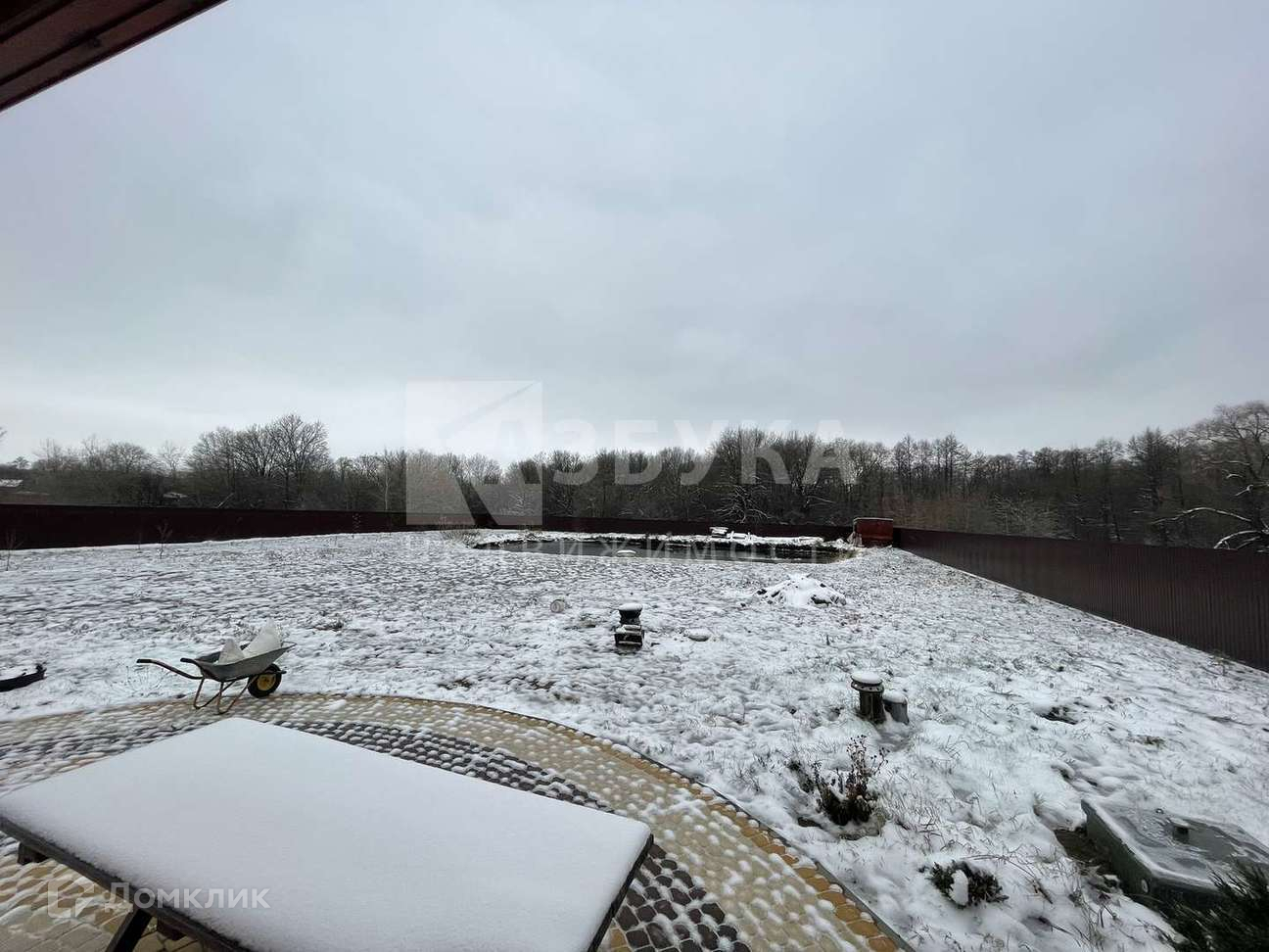 газ, скважина на 16 м, септик, фундамент под гараж с подвалом, пруд с рыбой