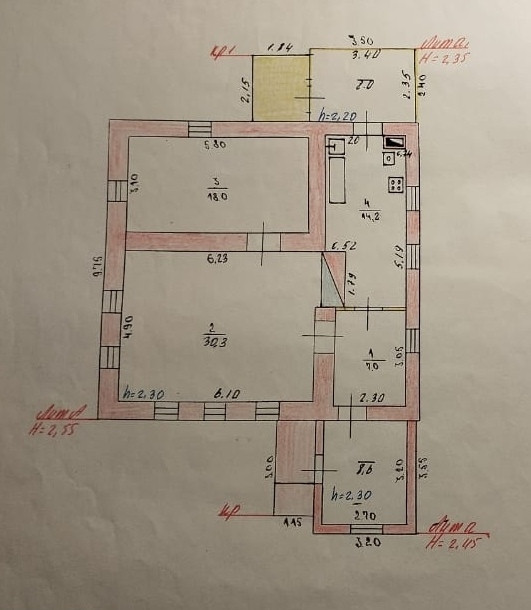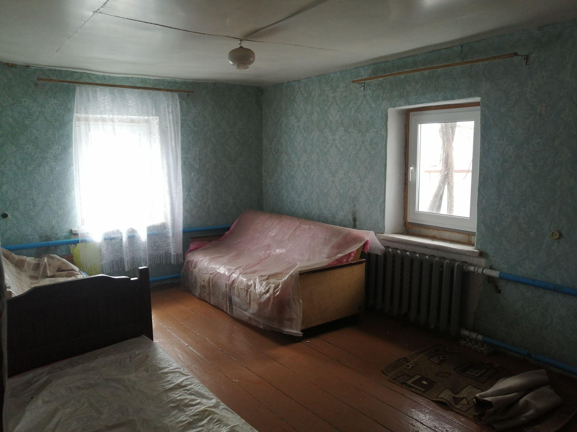 В доме газовое отопление АОГВ, свет, центральное водоснабжение, 2 большие комнаты 30 и 18 кв.м., кухня.