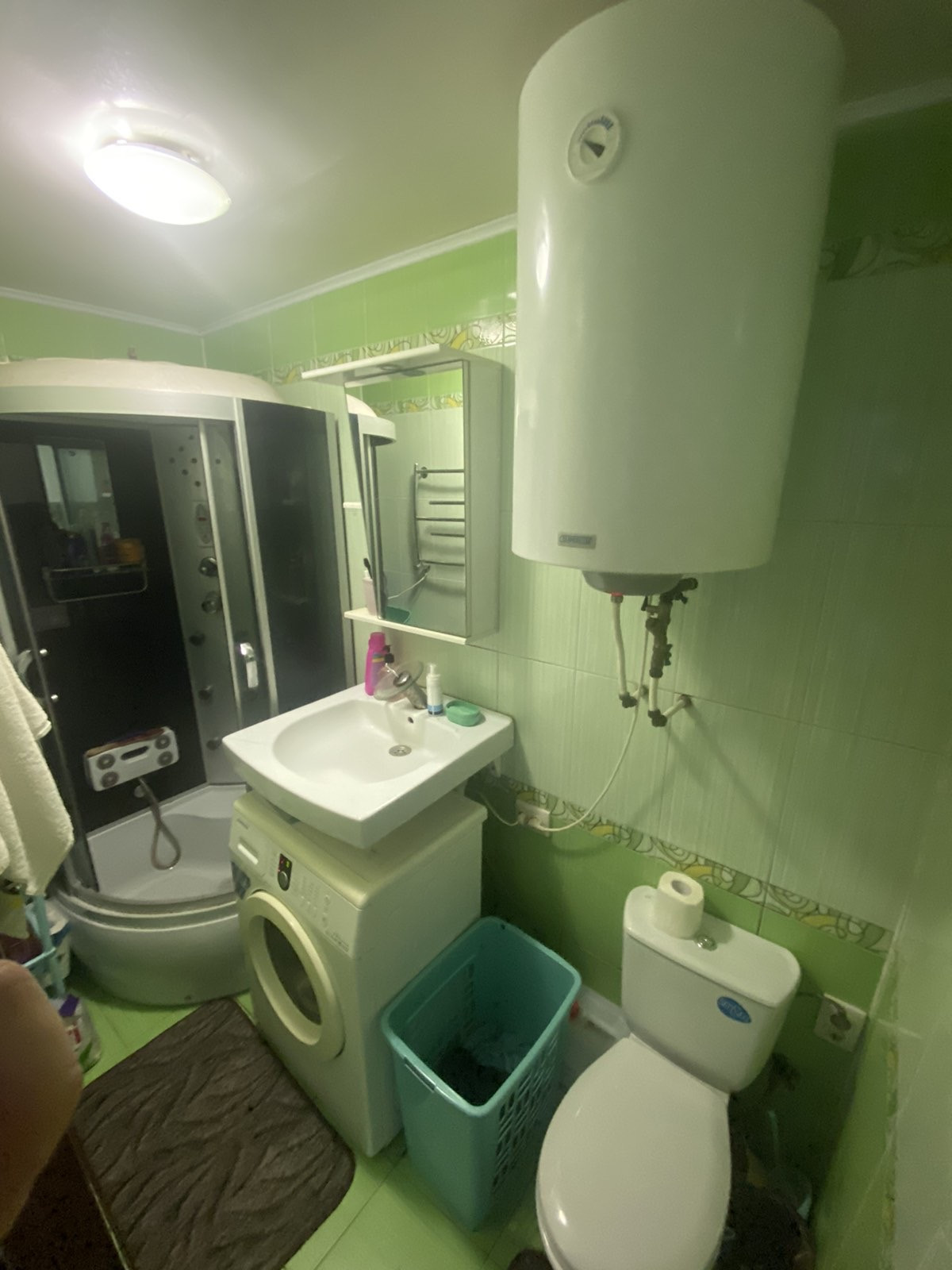-с/у совмещен ( стоит душевая кабина , нагреватель на 90 литров)