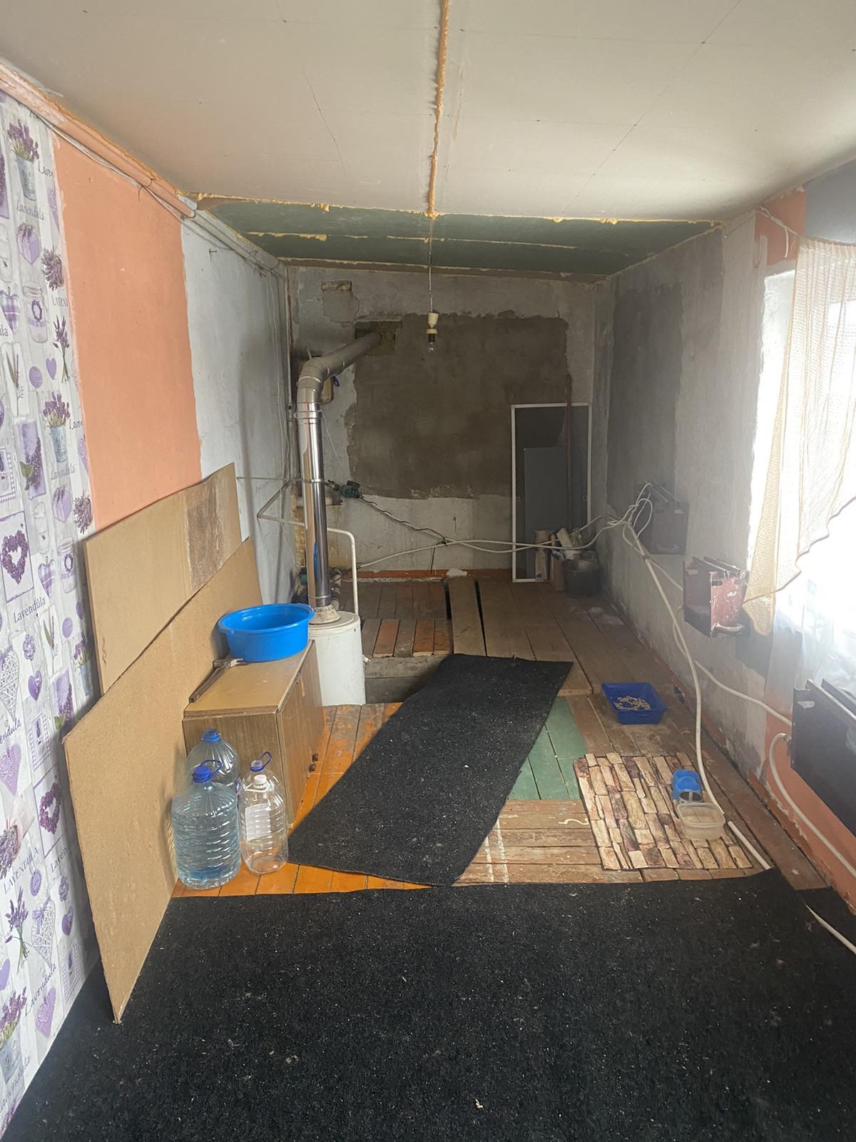 Пристрой начали утеплять , зашили потолок , поменяли окна , пустили второй контур от котла на отопление , зимой в нем средняя температура , так же в пристрое расположен сухой ПОГРЕБ.
