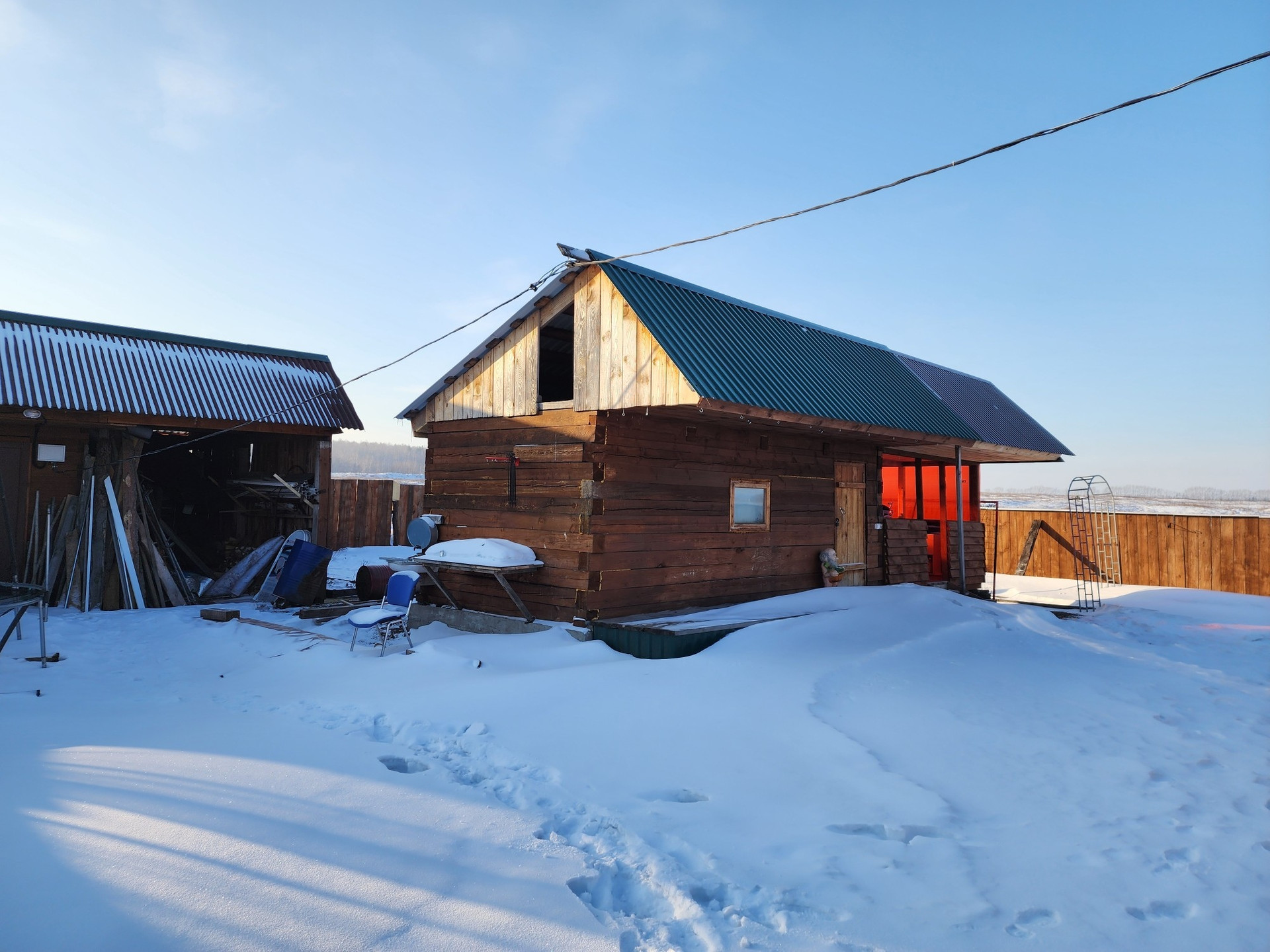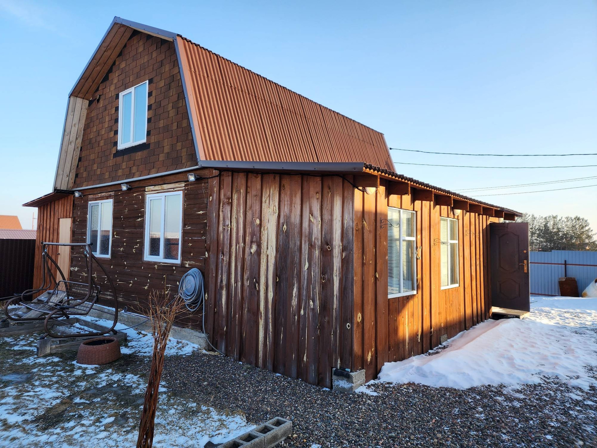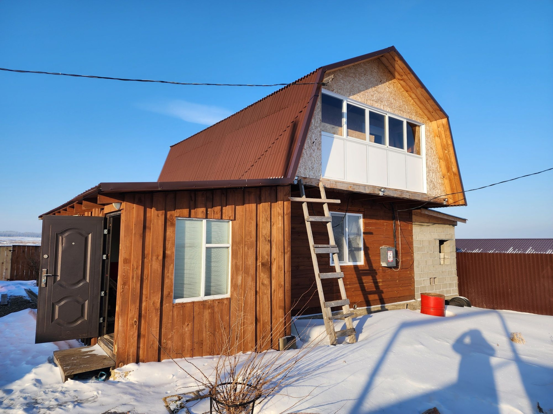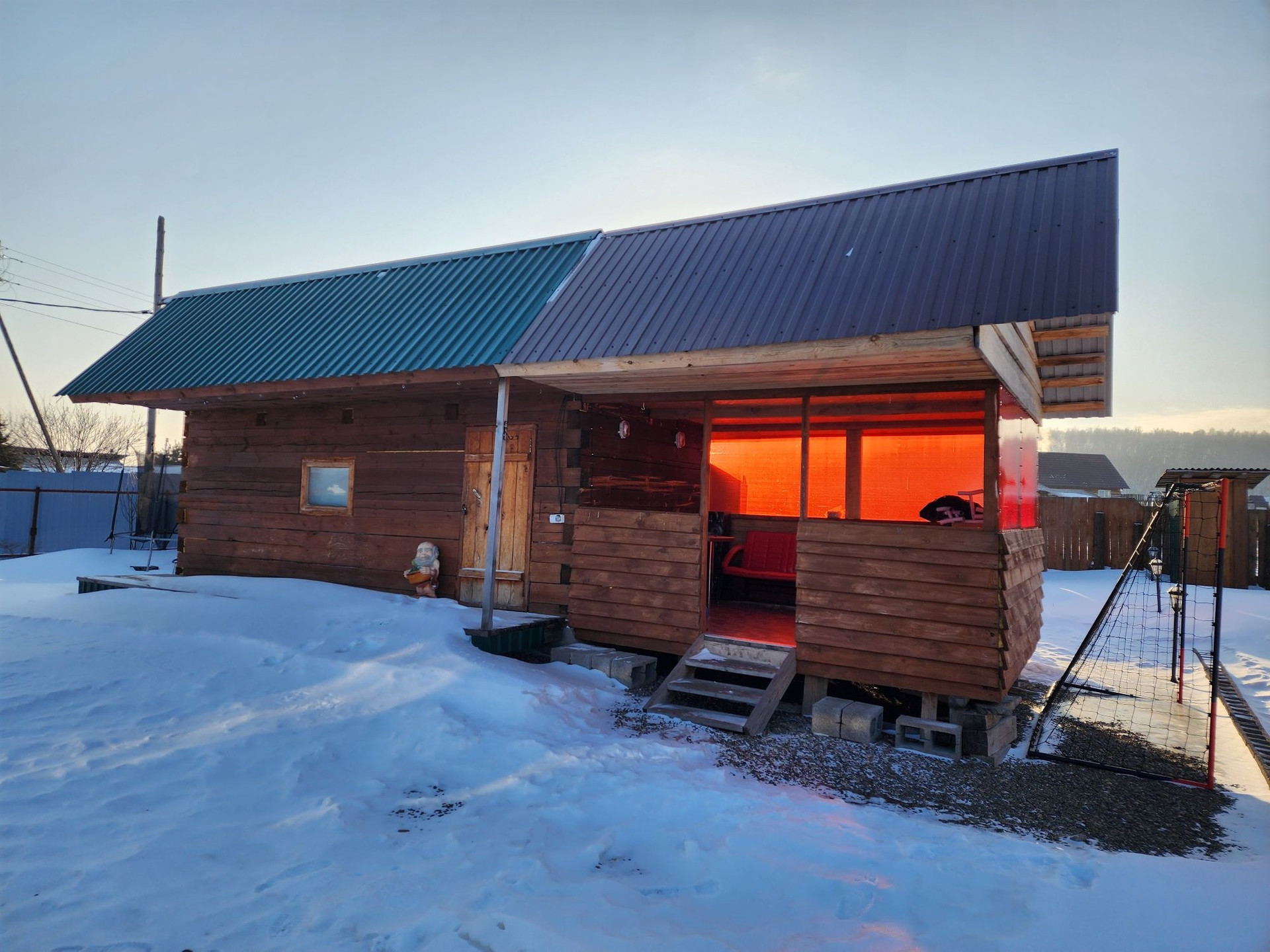 5. К дому пристроена качегарка 3.5*3м. и хоз.блок 2.5*2.5м., в качегарке установлен твердотопливный котёл с возможностью электроотопления, в дом отопление не проведено. Отопление дома осуществляется посредством воздушной завесы на 5кв. и небольшого обогревателя, с начала весны до конца осени этого достаточно.
