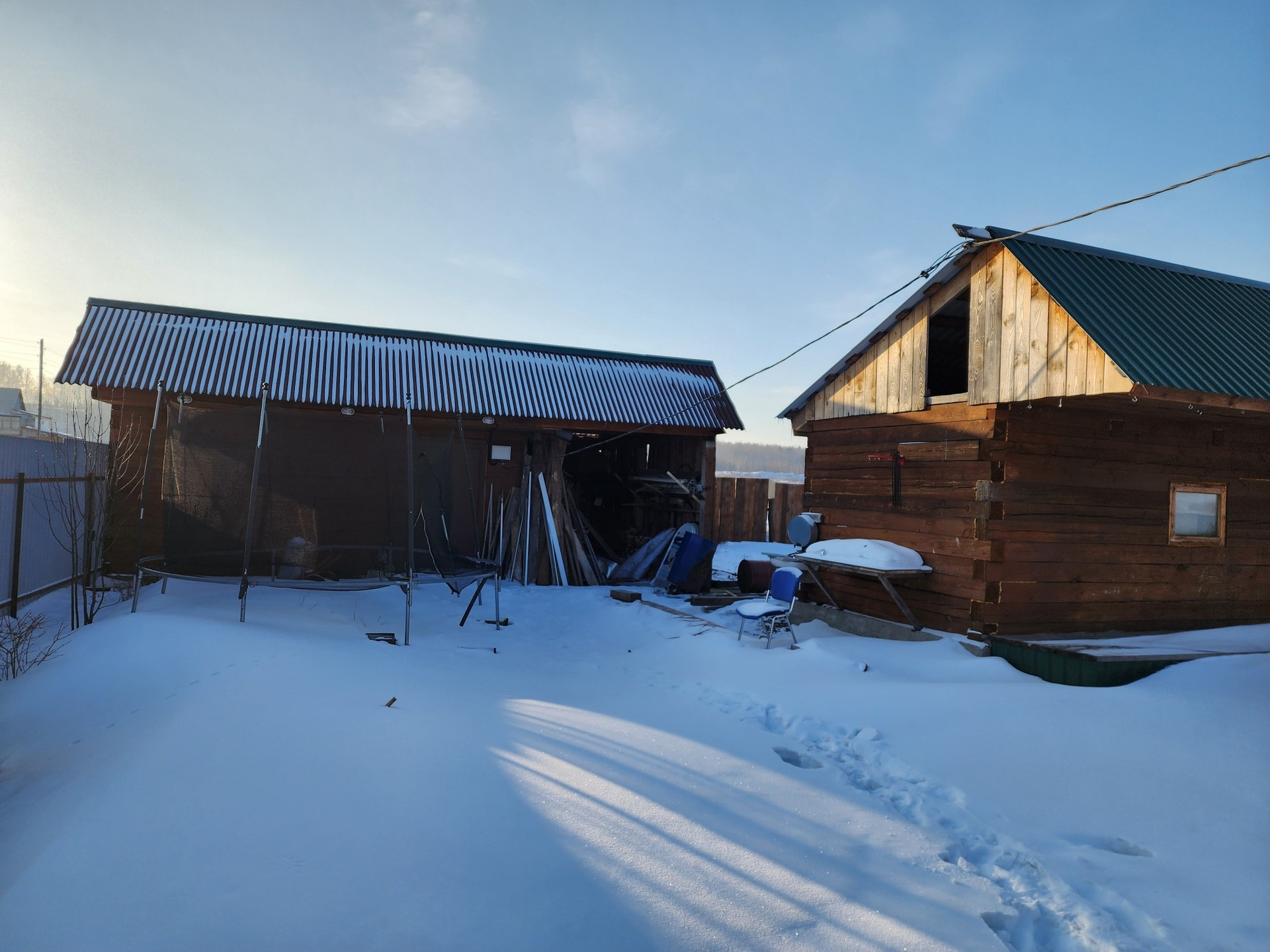 4. ГАРАЖ 6*6м. брусовой, к гаражу пристроен хоз.блок/дровенник под одну крышу.