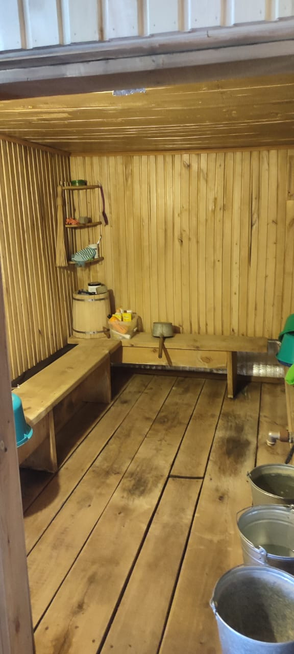 К дому примыкает баня с большой комнатой отдыха. К бане подведена вода, рядом сливная яма.