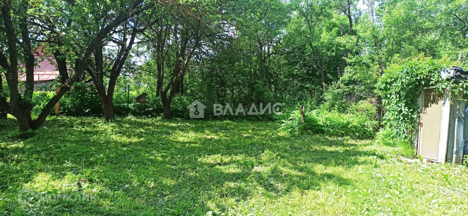 Земельный участок ровный, ухоженный, огорожен забором, ширина участка 22 м. Проведено межевание, ГПЗУ на участок имеется. Проведено электричество 15кВт, газ по границе участка. На участке построена бытовка 3 х 4,2м, растут плодовые деревья и кустарники.