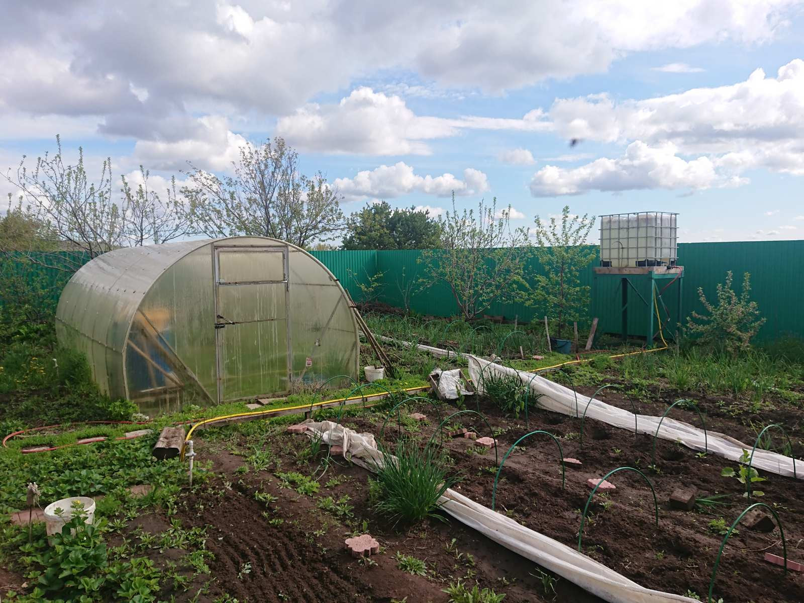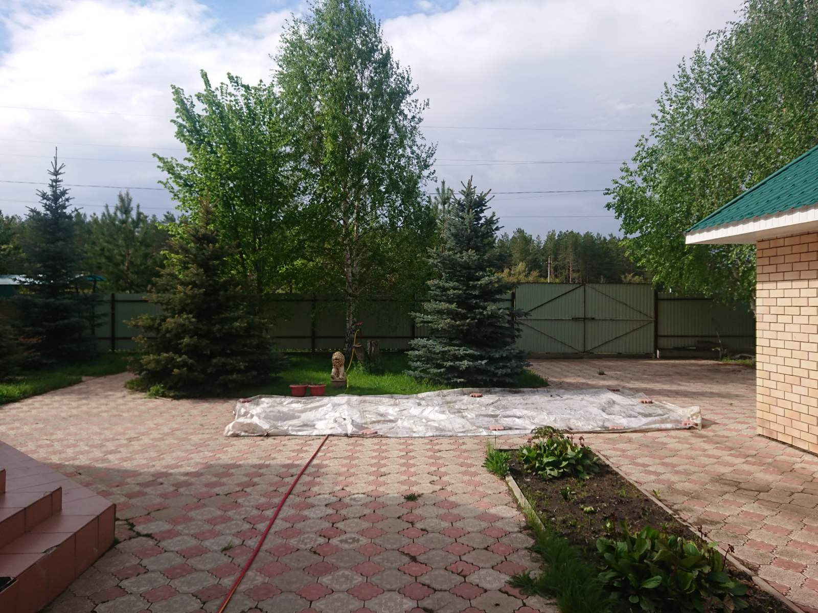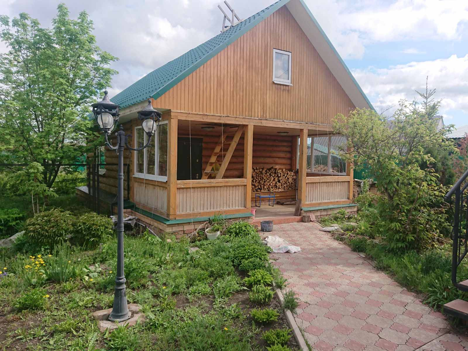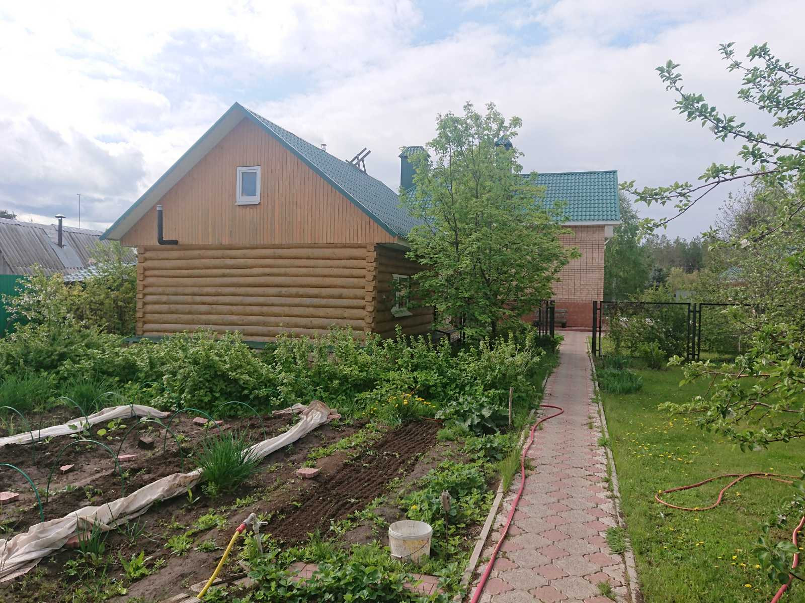 Участок ровный, двор частично выложен плиткой, ухоженный огород. На участке расположены баня (подключена горячая и холодная вода), гараж, сарай с погребом, веранда, теплица.