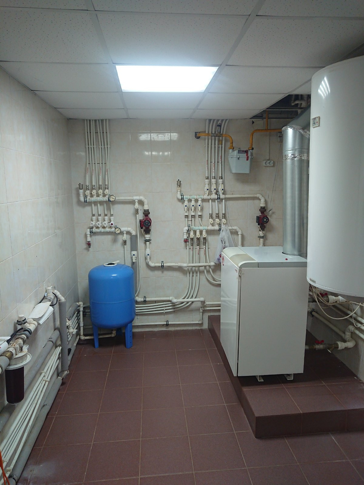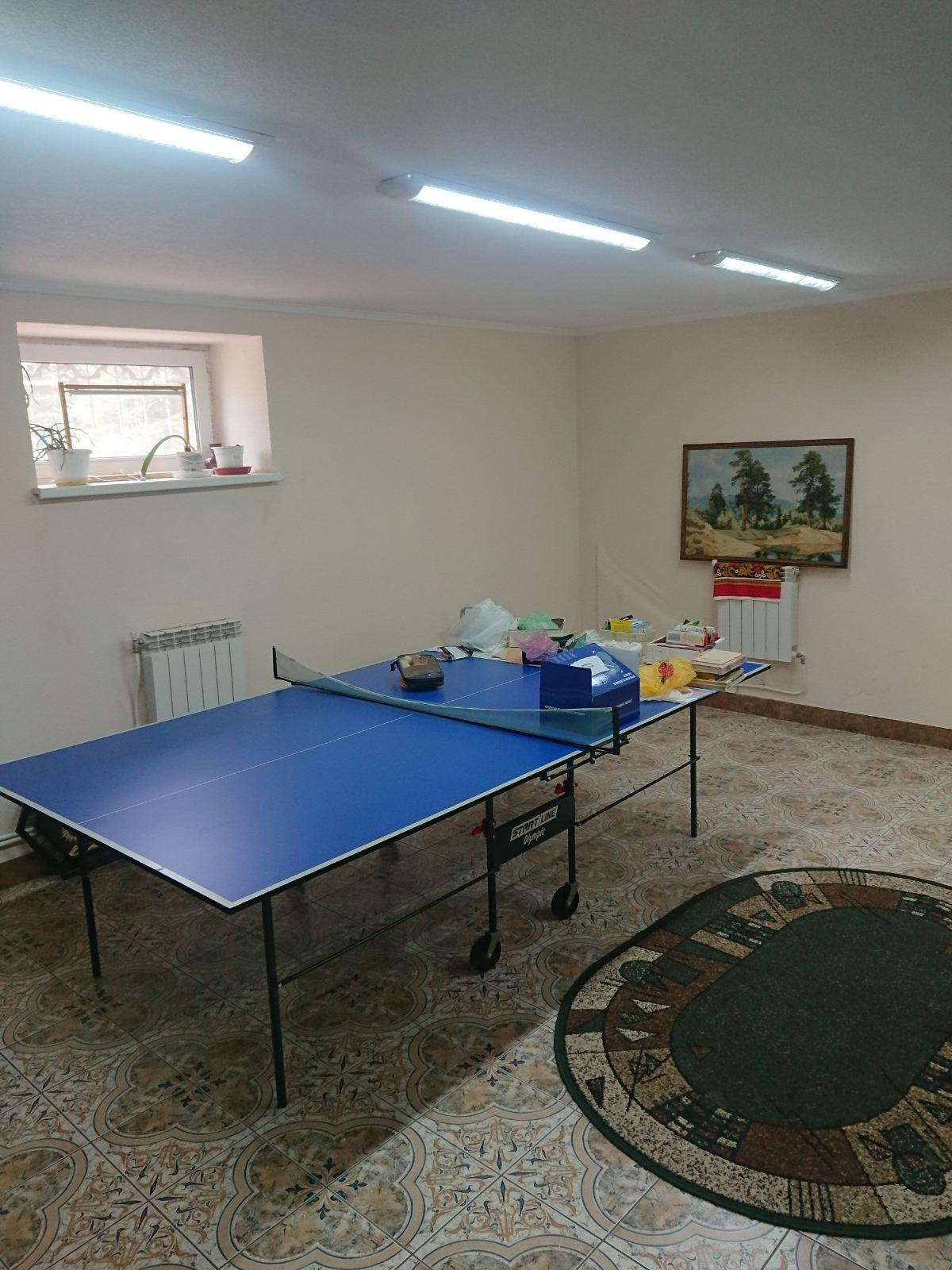 Под всем домом цокольный этаж, где расположены котельная, постирочная зона, мастерская, зал со спортивным инвентарем.