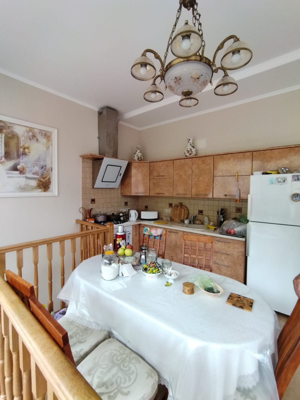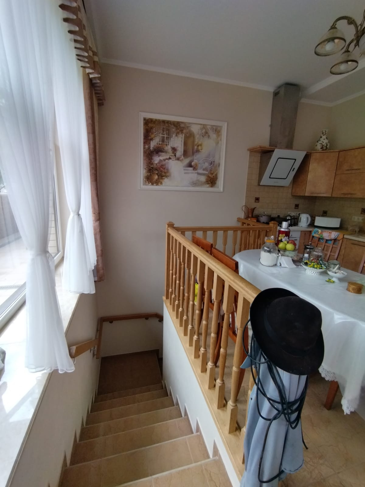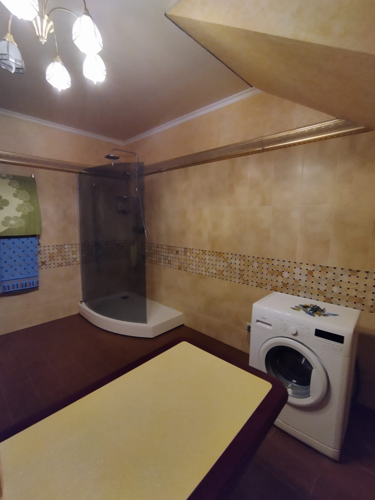С веранды спускаемся в цокольный этаж, где расположена бильярдная, сауна с двумя комнатами отдыха, винный бар с барной стойкой , винные шкафы, санузел. В цоколе также расположены котельная , водопроводная, электрощитовая, гараж с подъёмными воротами. В котельне стоят электро котёл и дровяной котёл, система нагрева тёплых полов и радиаторов, всё работает на электронике. В водопроводной расположена вся система очистки воды , система фильтрации бассейна.
