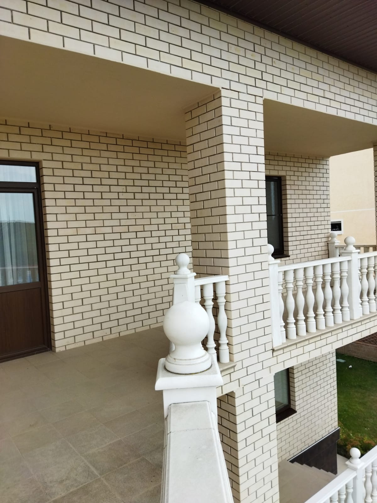 Дом построен из кирпича, облицован отделочным кирпичом. Толщина стен 50 см. Лестницы , перила, балясины, подоконники всё изготовлено из мрамора. Второй этаж опоясан балконом, с мраморными перилами и балясинами.