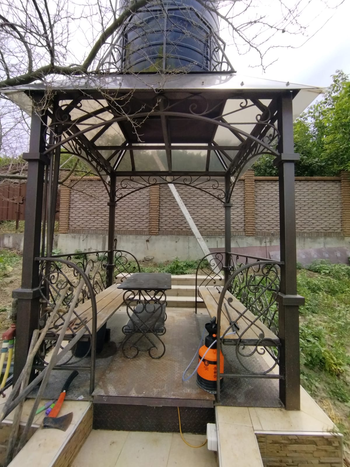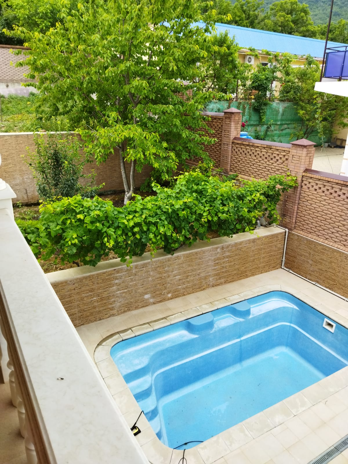 Из коммуникаций сделана скважина на 76 метров расположенная под беседкой, септик , электричество 15 КВ. До центральной асфальтированной дороги пешком 7 минут, на машине 2 минуты.