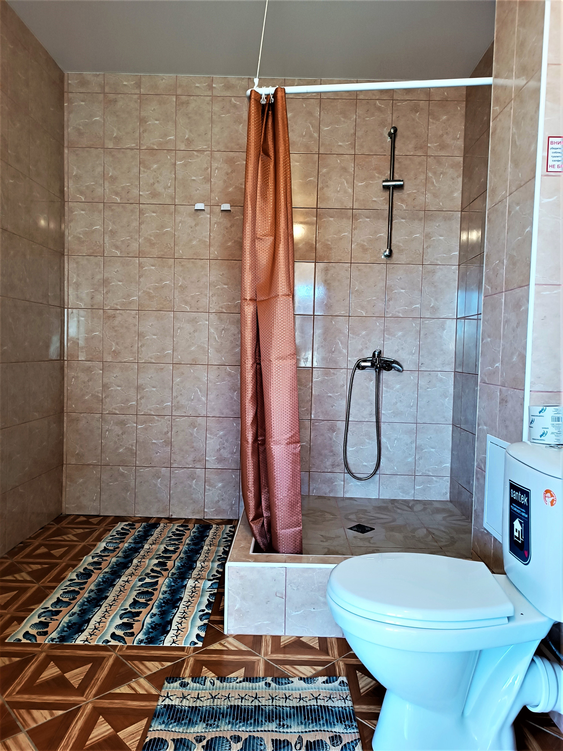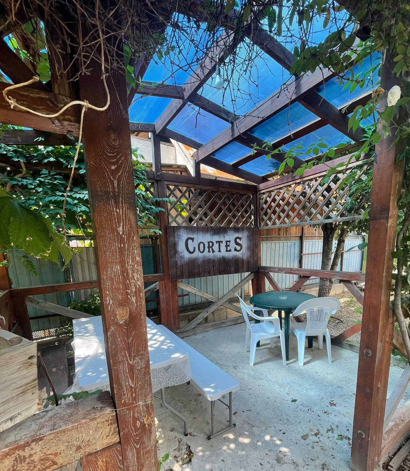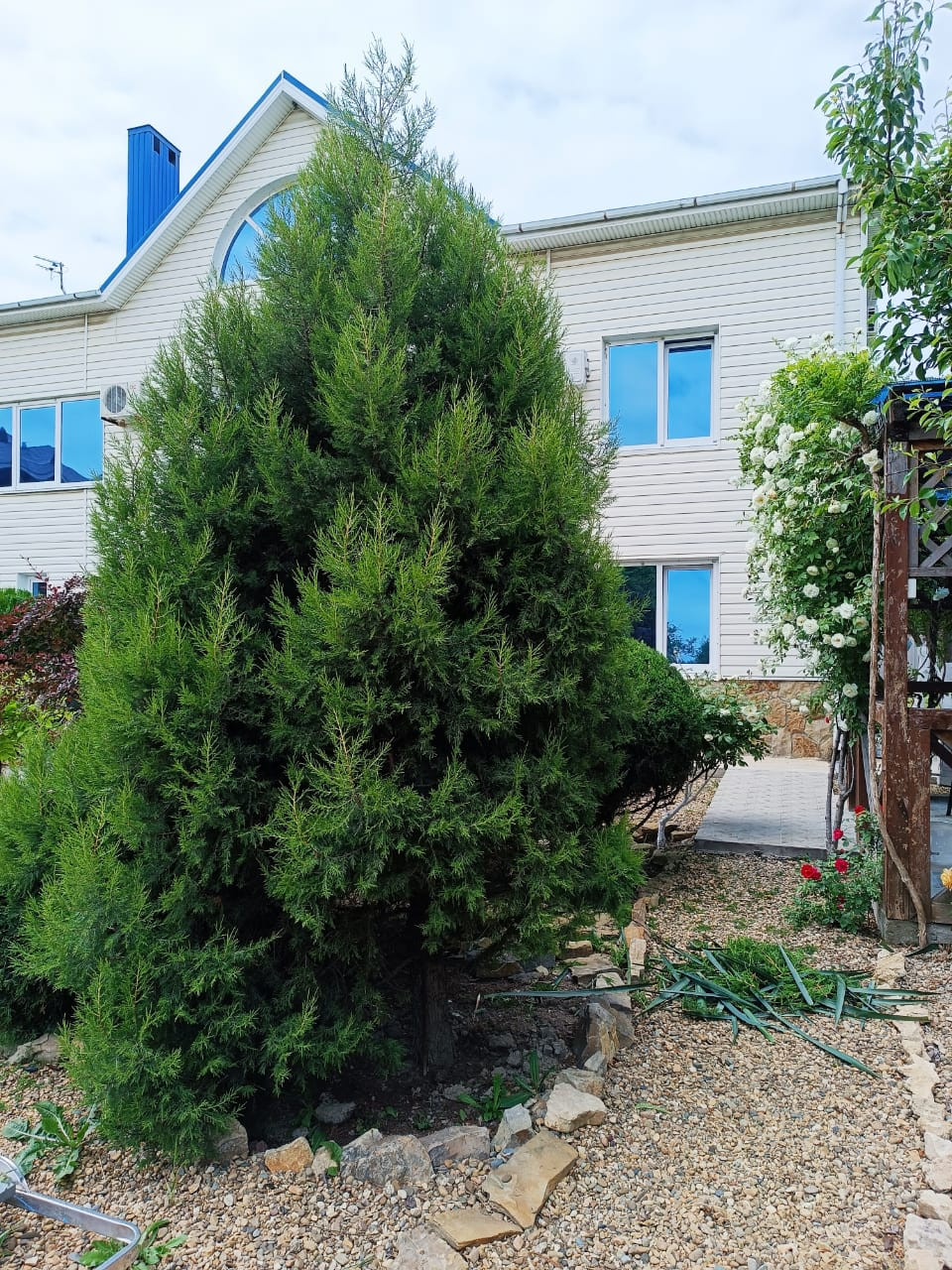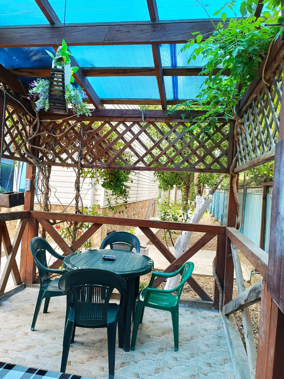 В просторном дворе есть зоны отдыха, беседка есть мангал, Во дворе выложено морской галькой (создается впечатление, что находишься на море) фруктовый сад и декоративные растения. Все максимально приближено к природе.