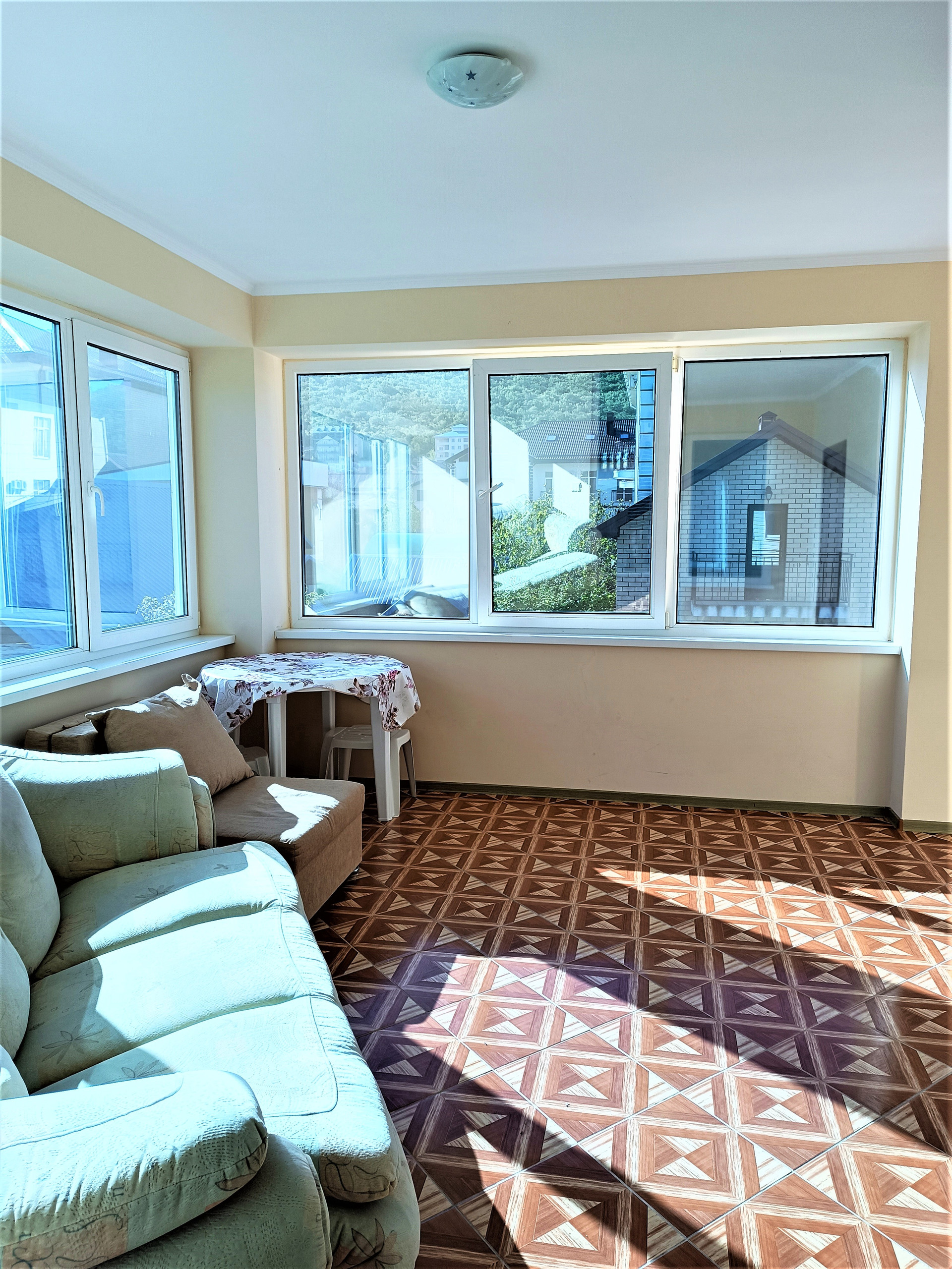 В доме 10 комнат, на 1- этаже расположена кухня, и 2-комнаты с санузлами и душевыми. На втором и третьем этажах расположены 8 комнат, две комнаты из них с кухней, все комнаты с удобствами во всех комнатах санузлы и душевые кабины, установлены кондиционеры, интернет, так же оборудованы техникой (телевизорами, холодильниками, мебелью), для сдачи отдыхающим. В доме есть большой гараж, ворота высокие даже может въехать газель. (Все комнаты можно сдавать круглогодично, в сезон полный аншлаг).