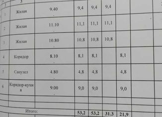 Продаю трехкомнатную квартиру, 53.2 м2, улица Строителей, 1