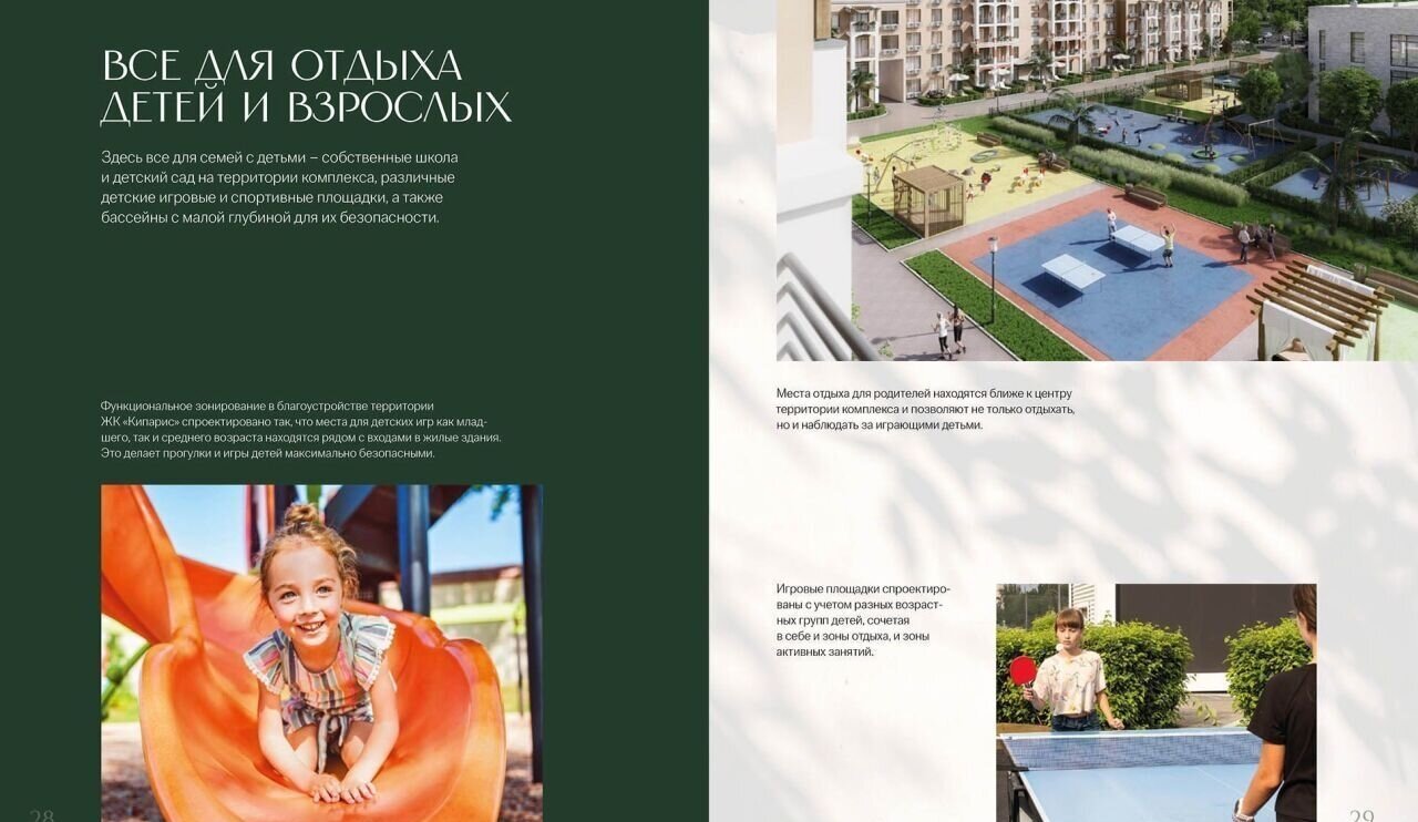 Развитая социальная и развлекательная инфраструктур, детский сад и школа на территории комплекса