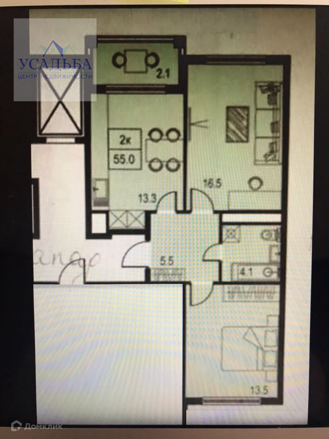 Кухня 13,3 м, спальня 13,5 м, гостинная 16,5 м, ванная 4,1 м, балкон 2,1 м.