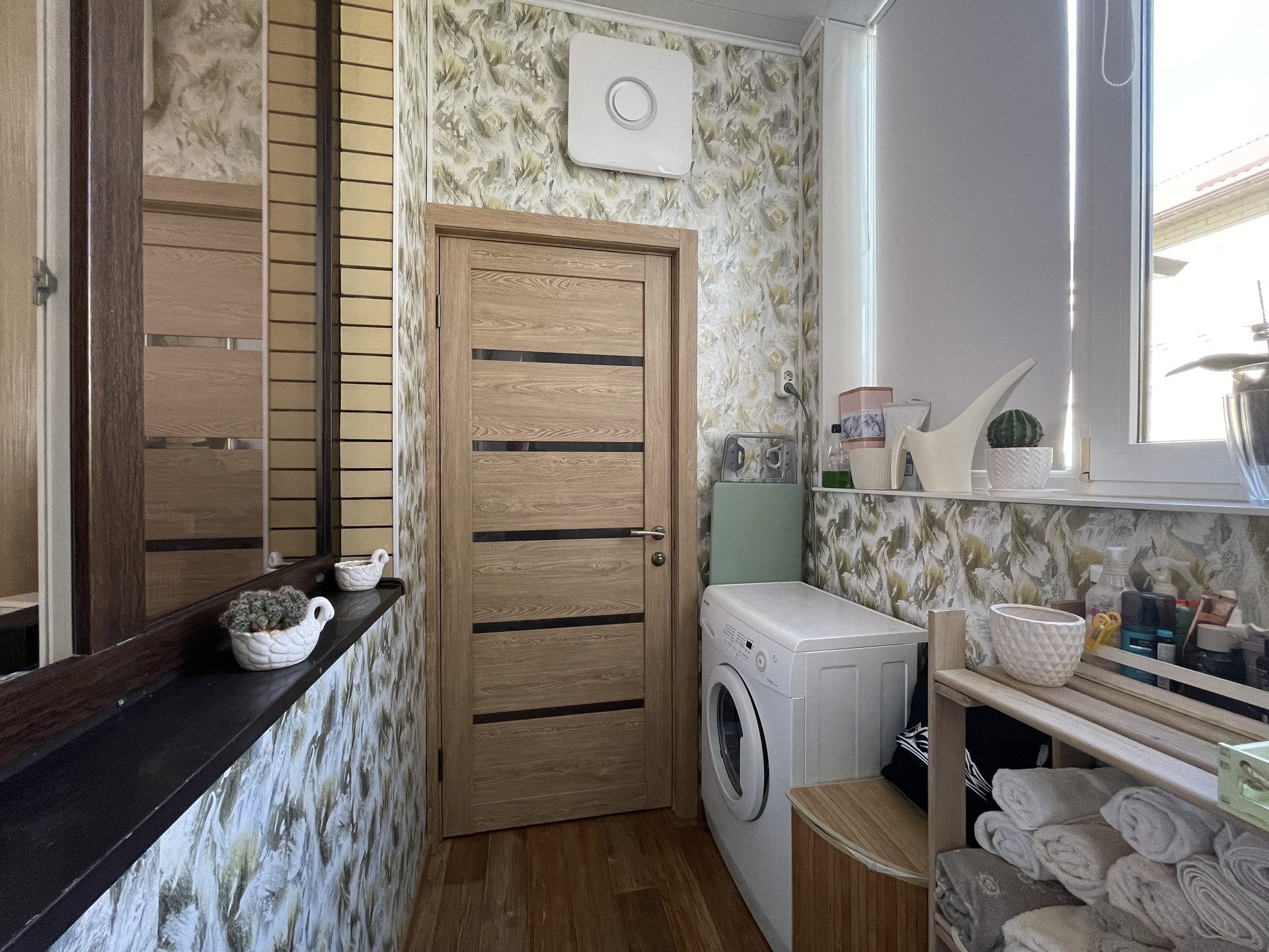• стены 60 см (блок + кирпич), окрашенные стеклообои.
