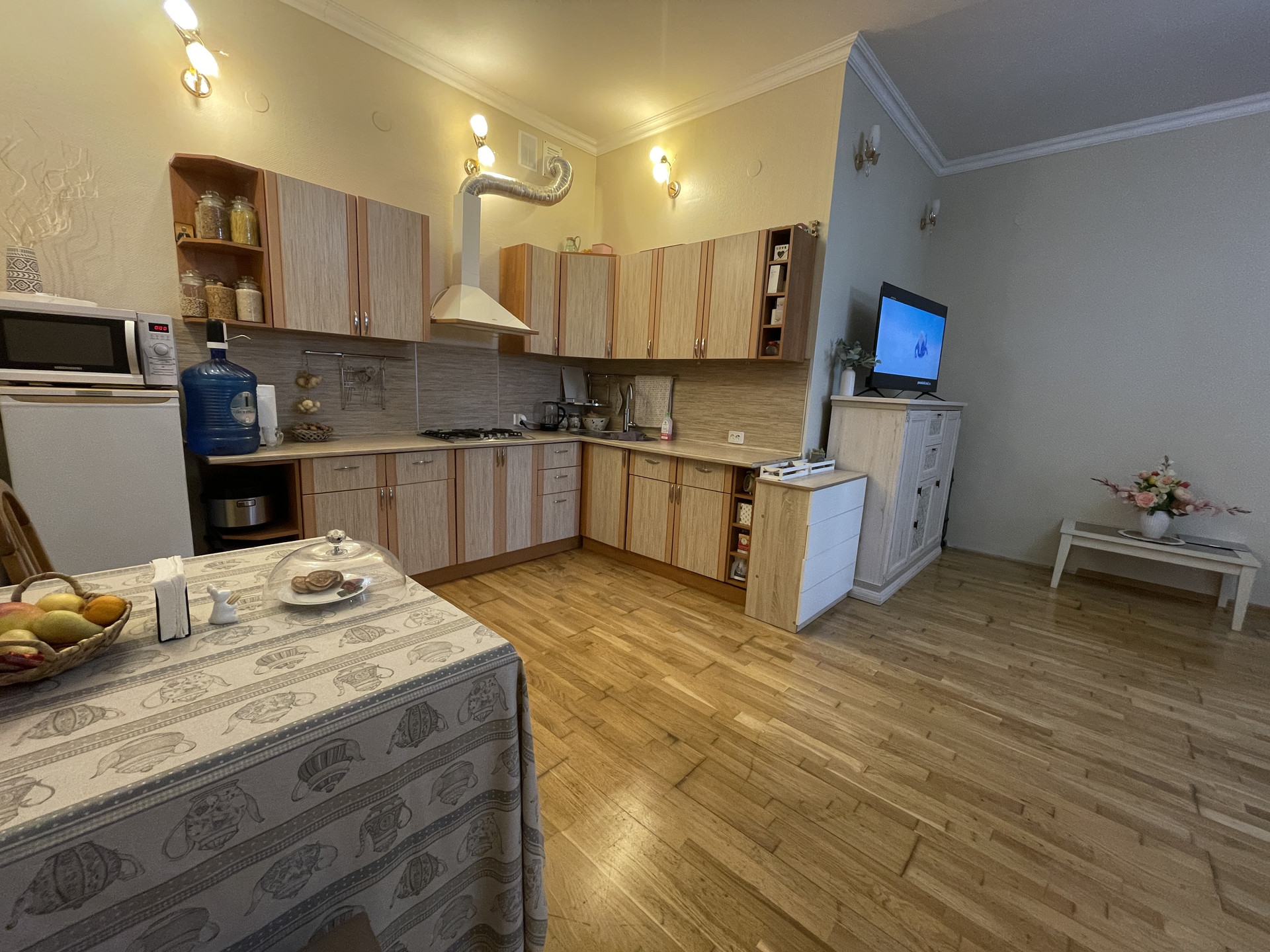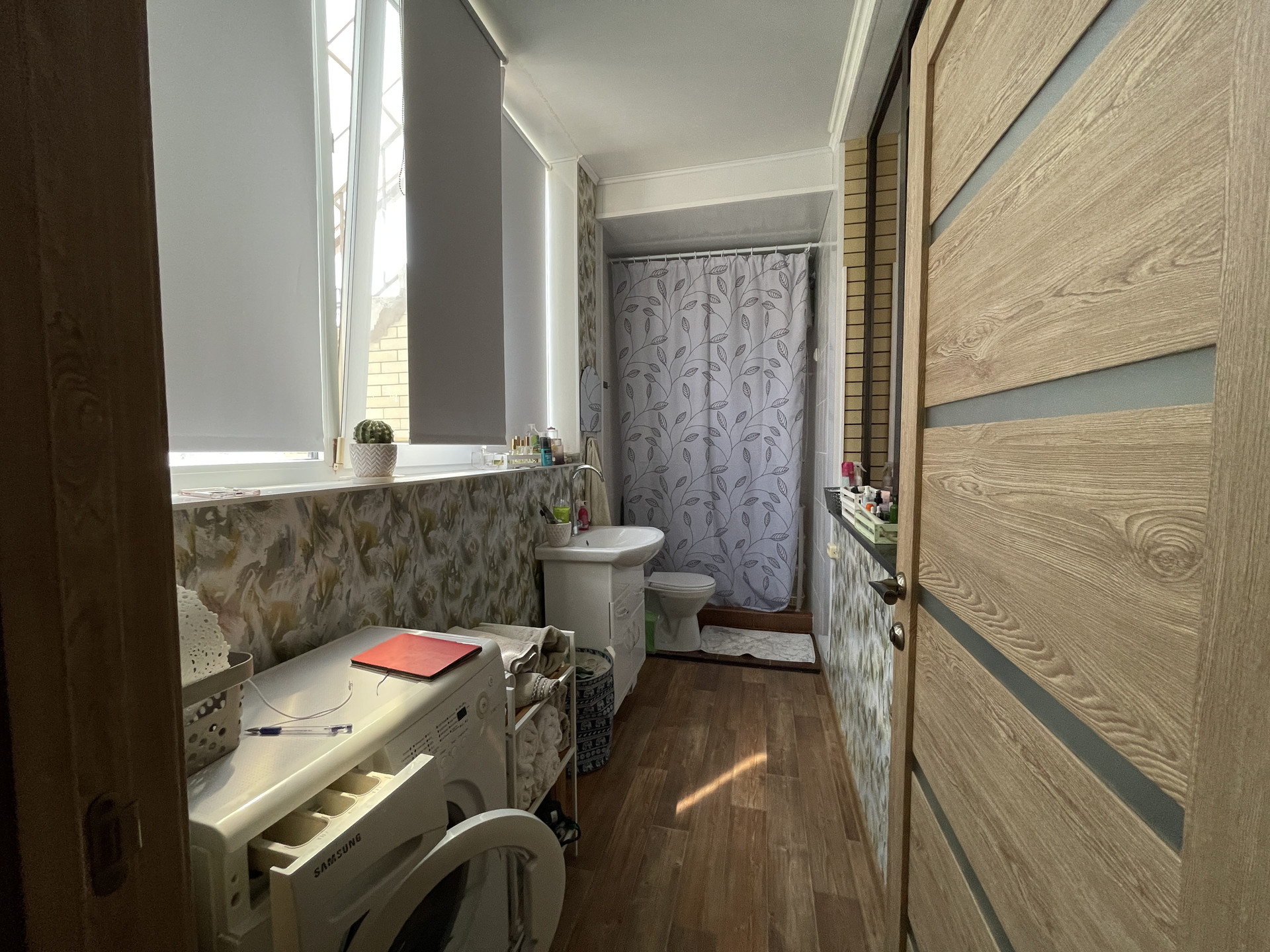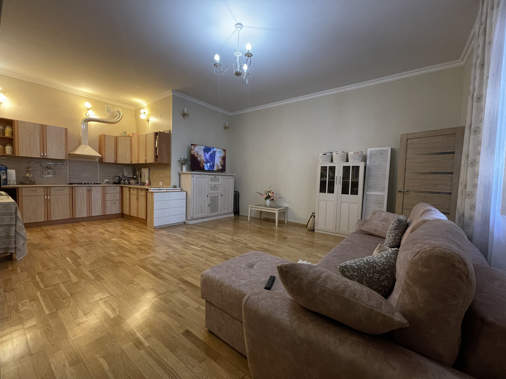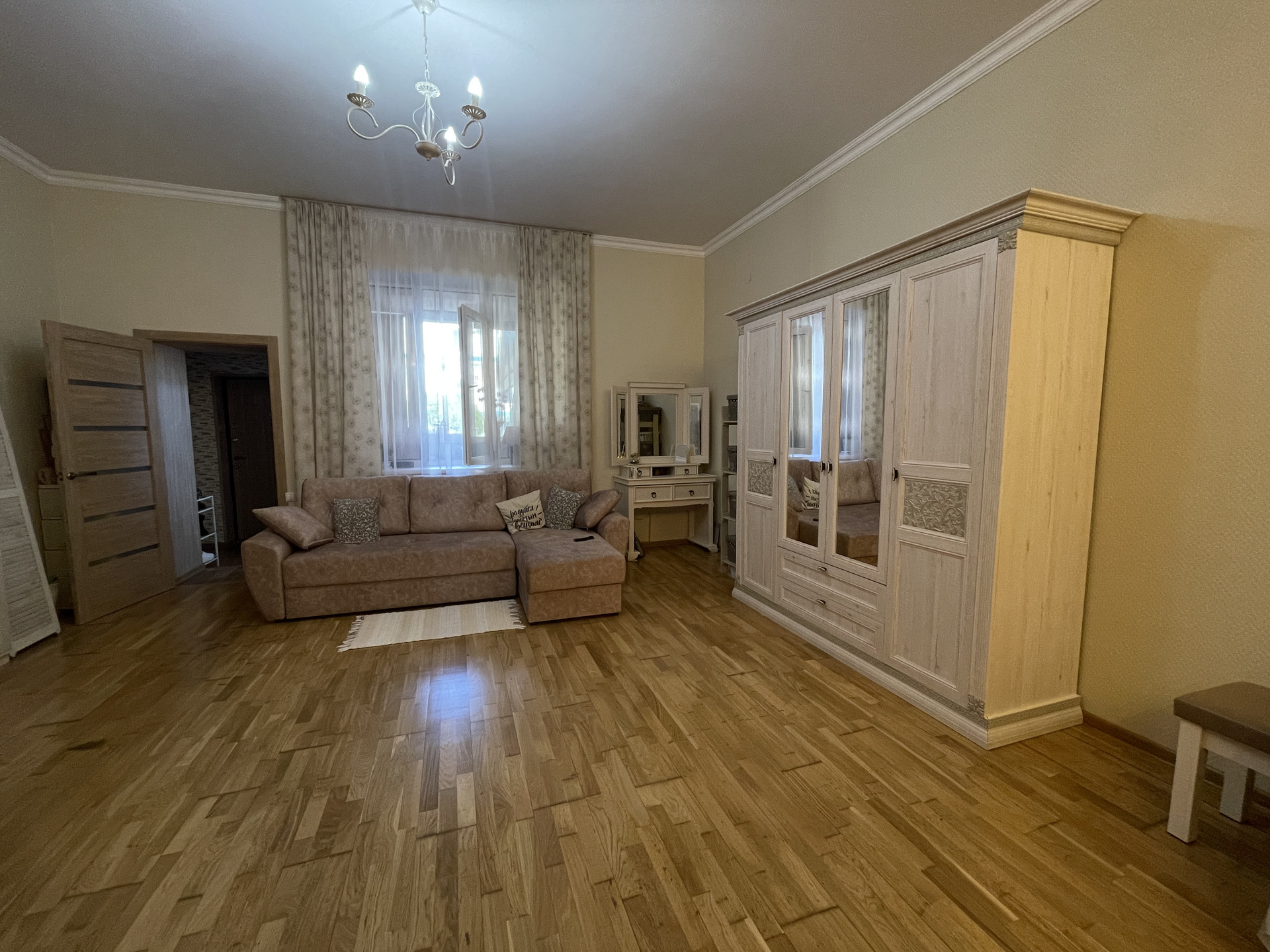 • пол - натуральная паркетная доска (дуб) — очень теплый.