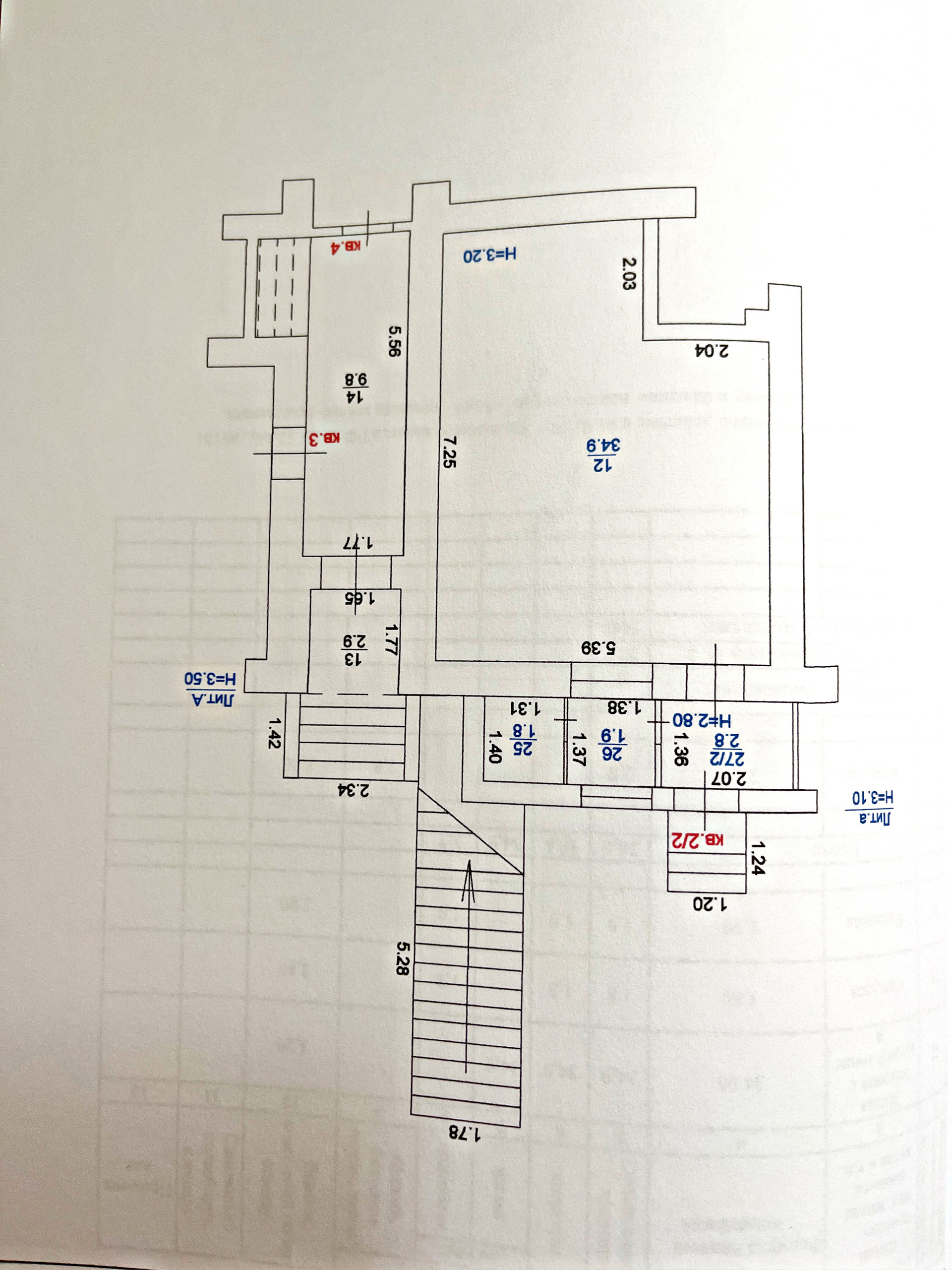 Высота потолка = 3,20 м.