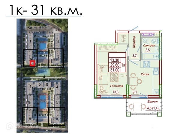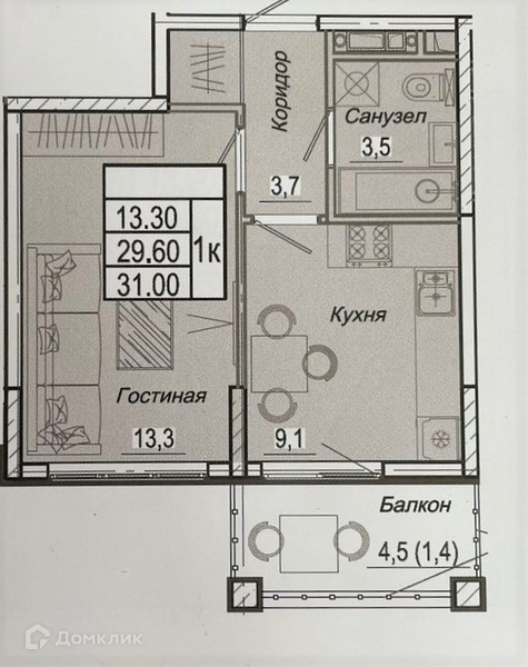 Общая площадь 31 м2