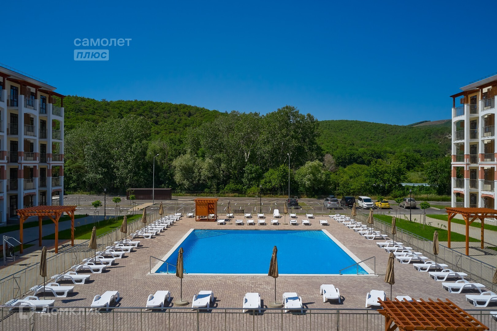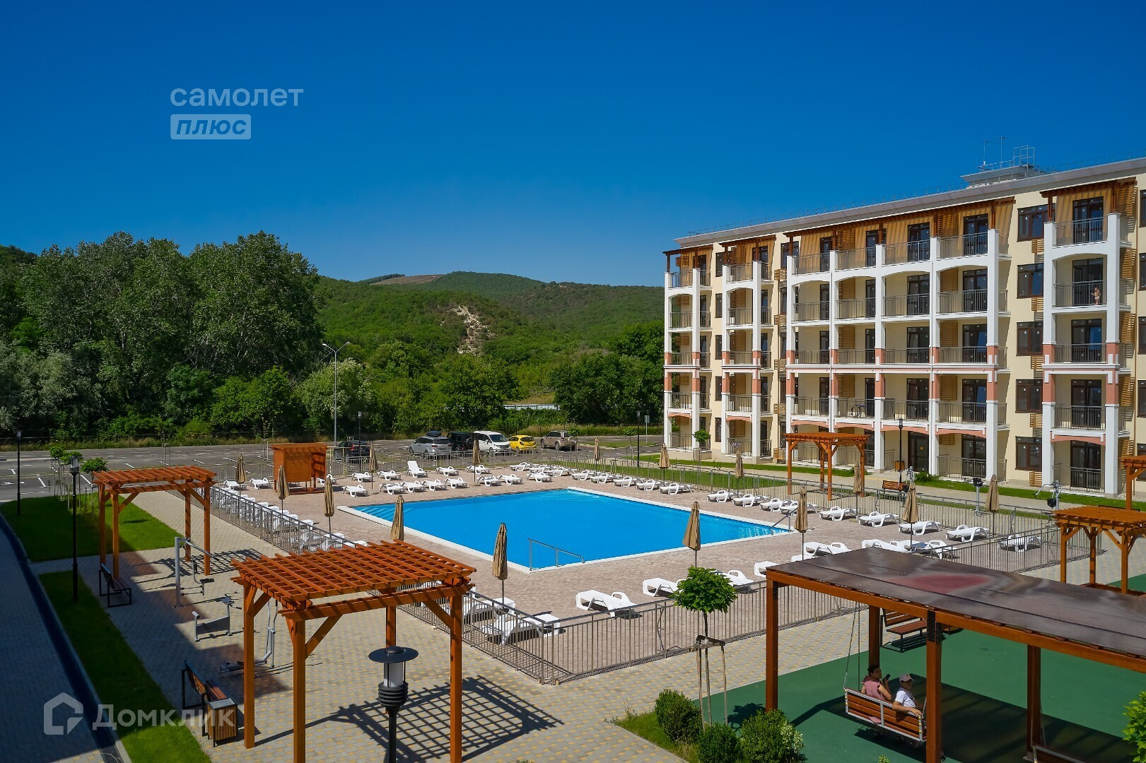 Комплекс также предлагает своим жителям множество удобств. В каждом дворе есть бассейн, где можно освежиться и расслабиться в жаркие летние дни. В комплексе находится магазин "Пятерочка", где вы всегда сможете приобрести все необходимое. Также в непосредственной близости есть остановка общественного транспорта, школа и детский сад, что делает этот комплекс идеальным для семей с детьми.