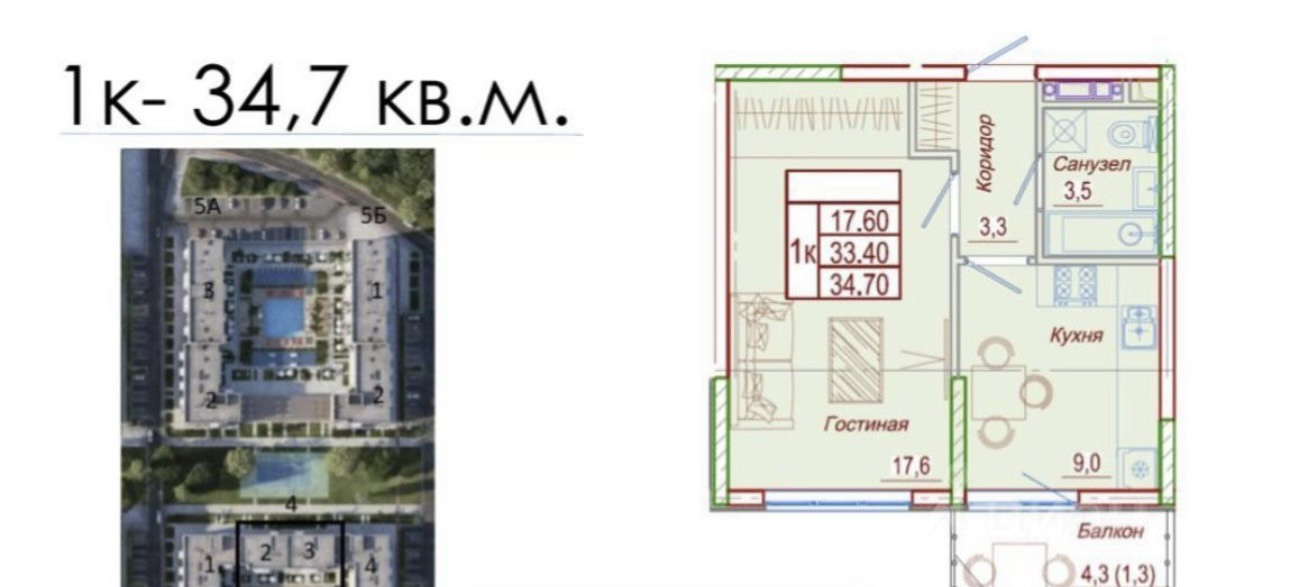 Общая площадь 35 м2