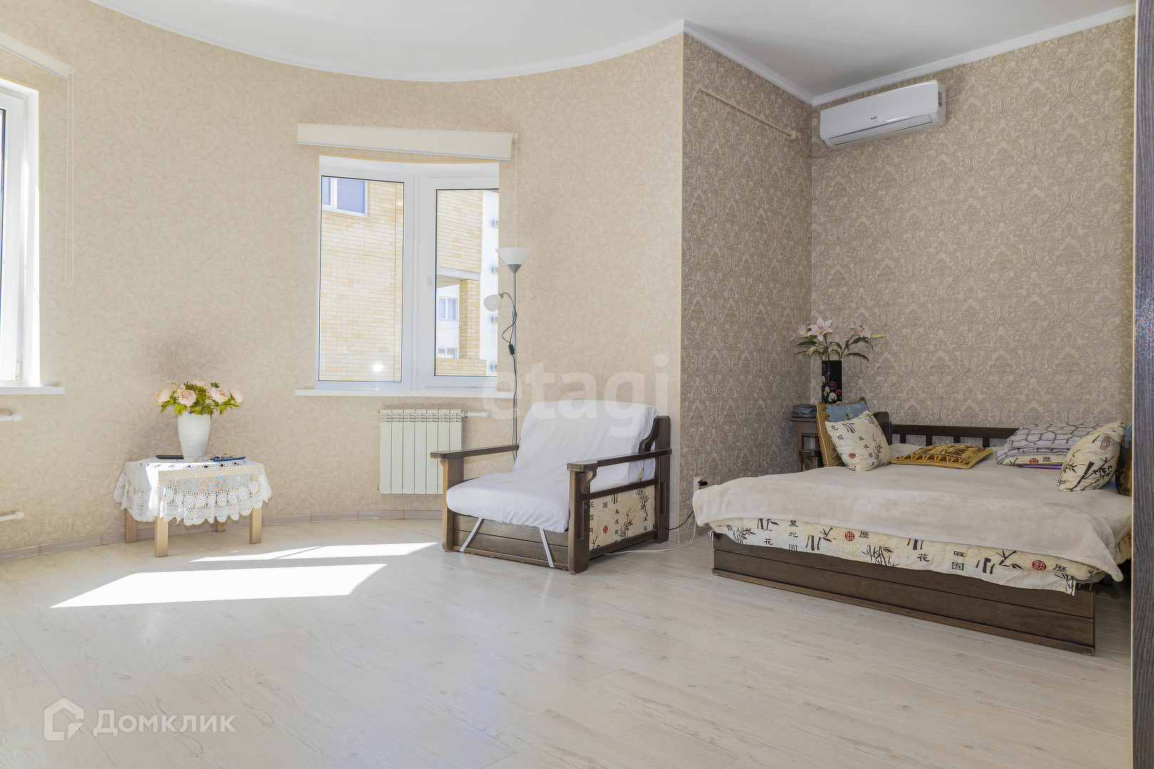 Коммуникации: канализация центральная, отопление от электрического котла + по всему периметру комнат есть тёплые полы.