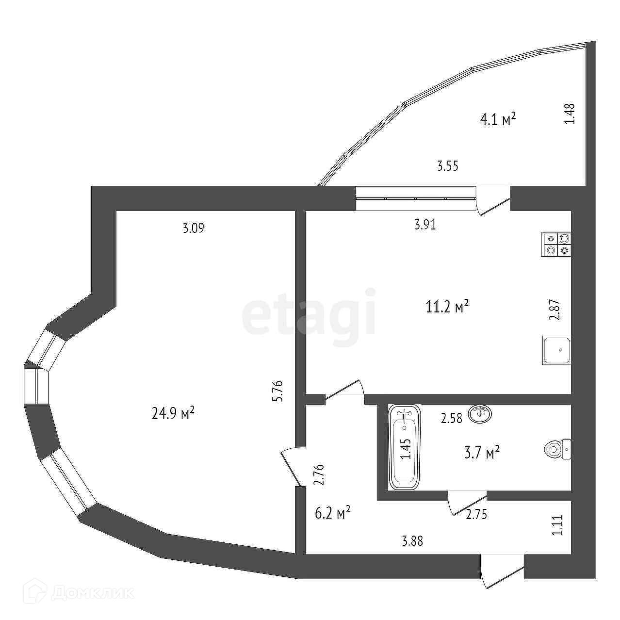 Общая площадь 51 м2