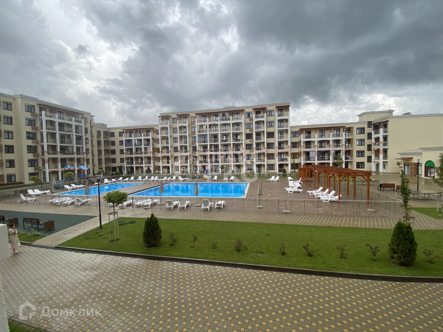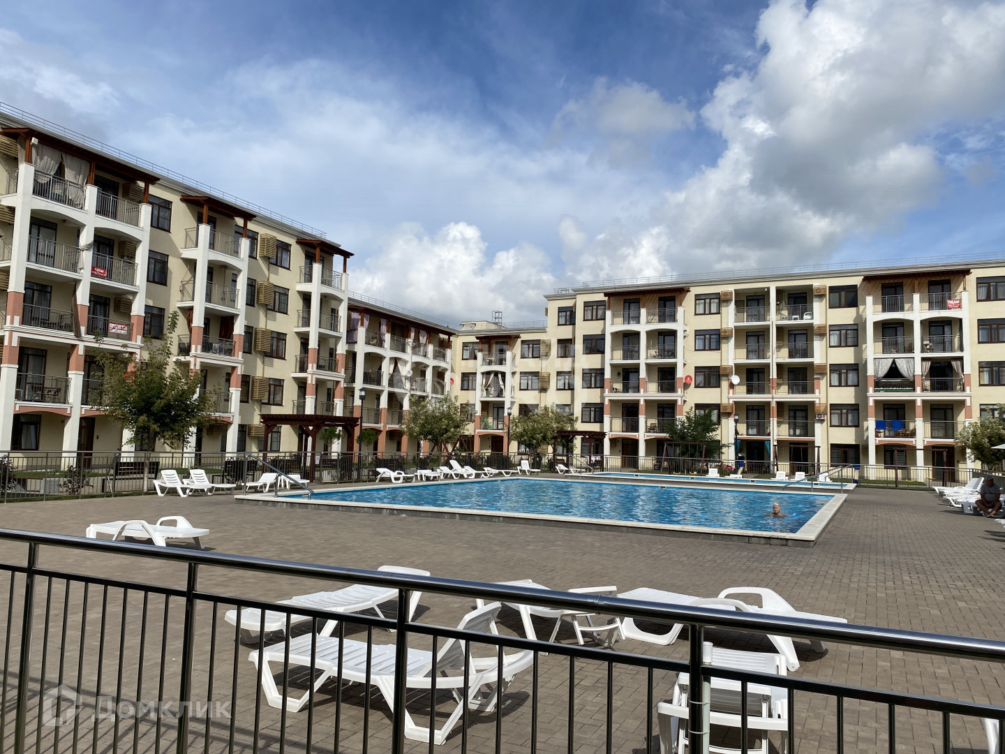 -балкон и все окна выходят на бассейн.