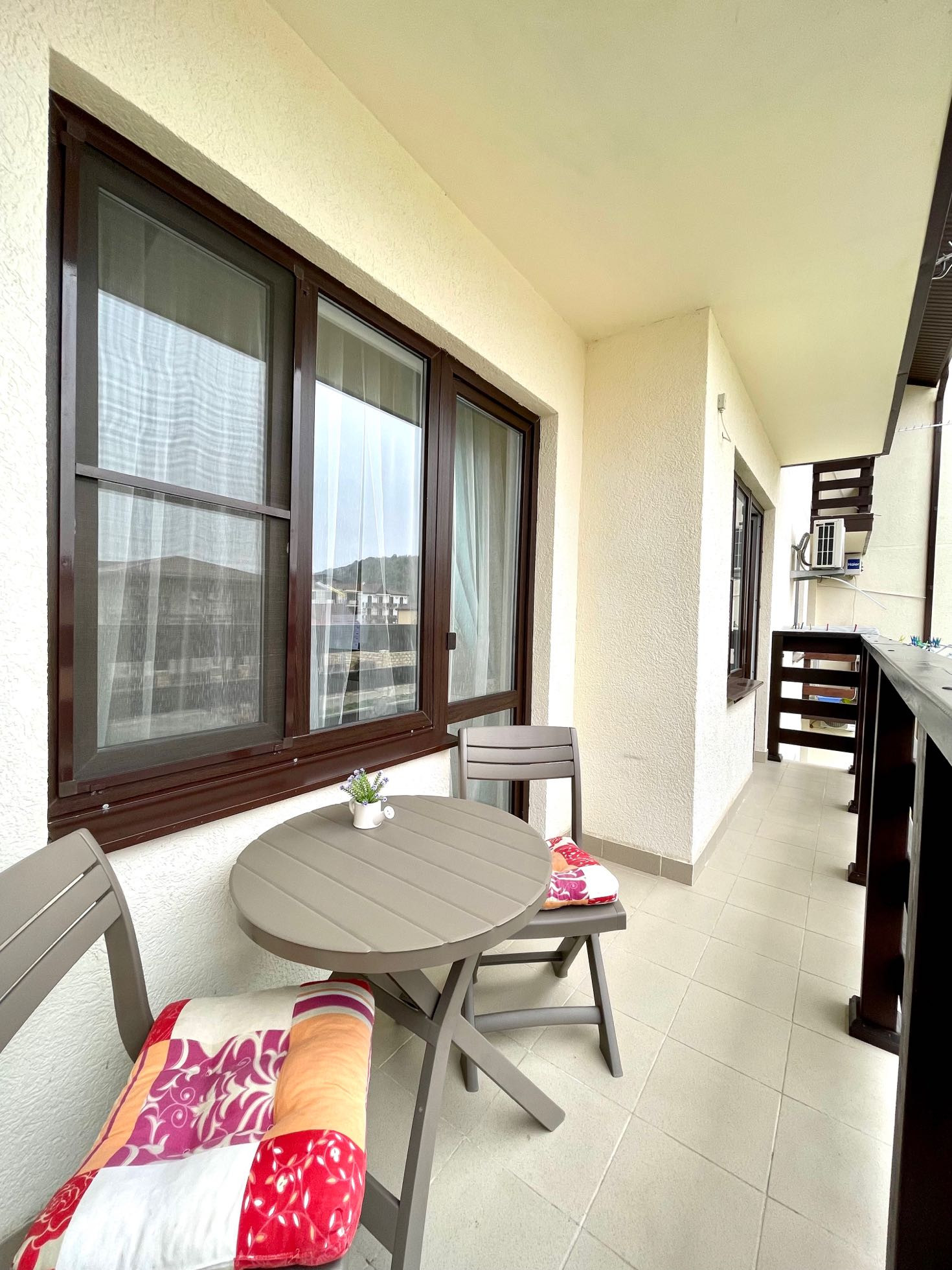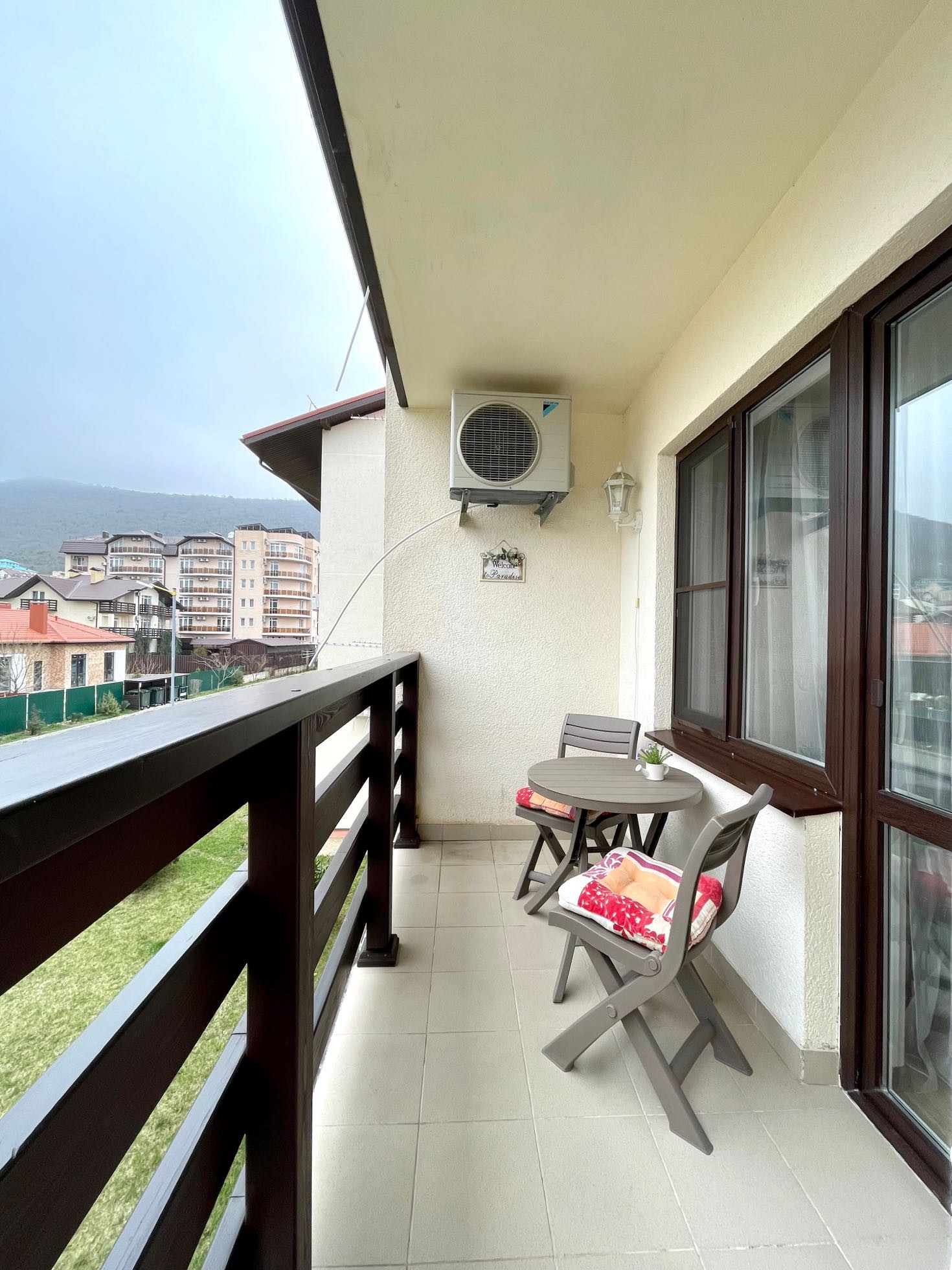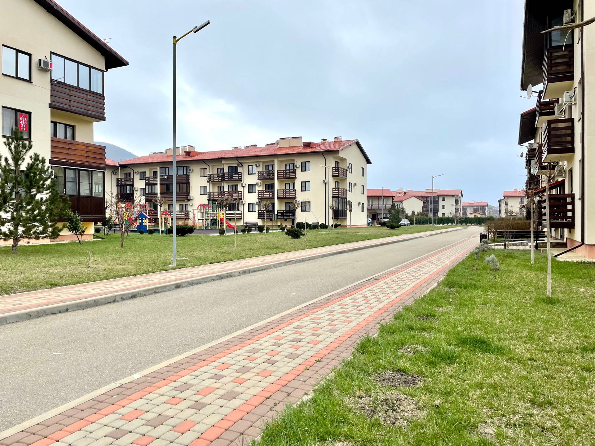 Охраняемая и благоустроенная территория, по всему комплексу имеется видеонаблюдение. На территории резиденции 3 детские игровые площадки, 1 спортивная, прогулочные зоны отдыха, 2 бассейна. Развитая инфраструктура в шаговой доступности. Жить в таком месте удовольствие. Пляж с мелкой галькой в 700 метрах.