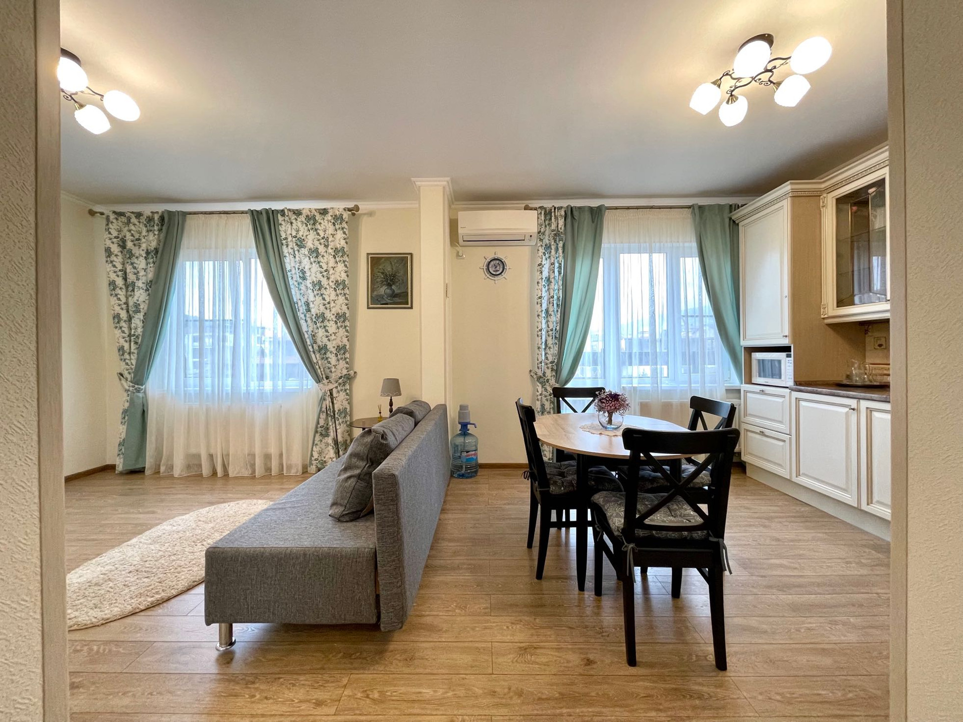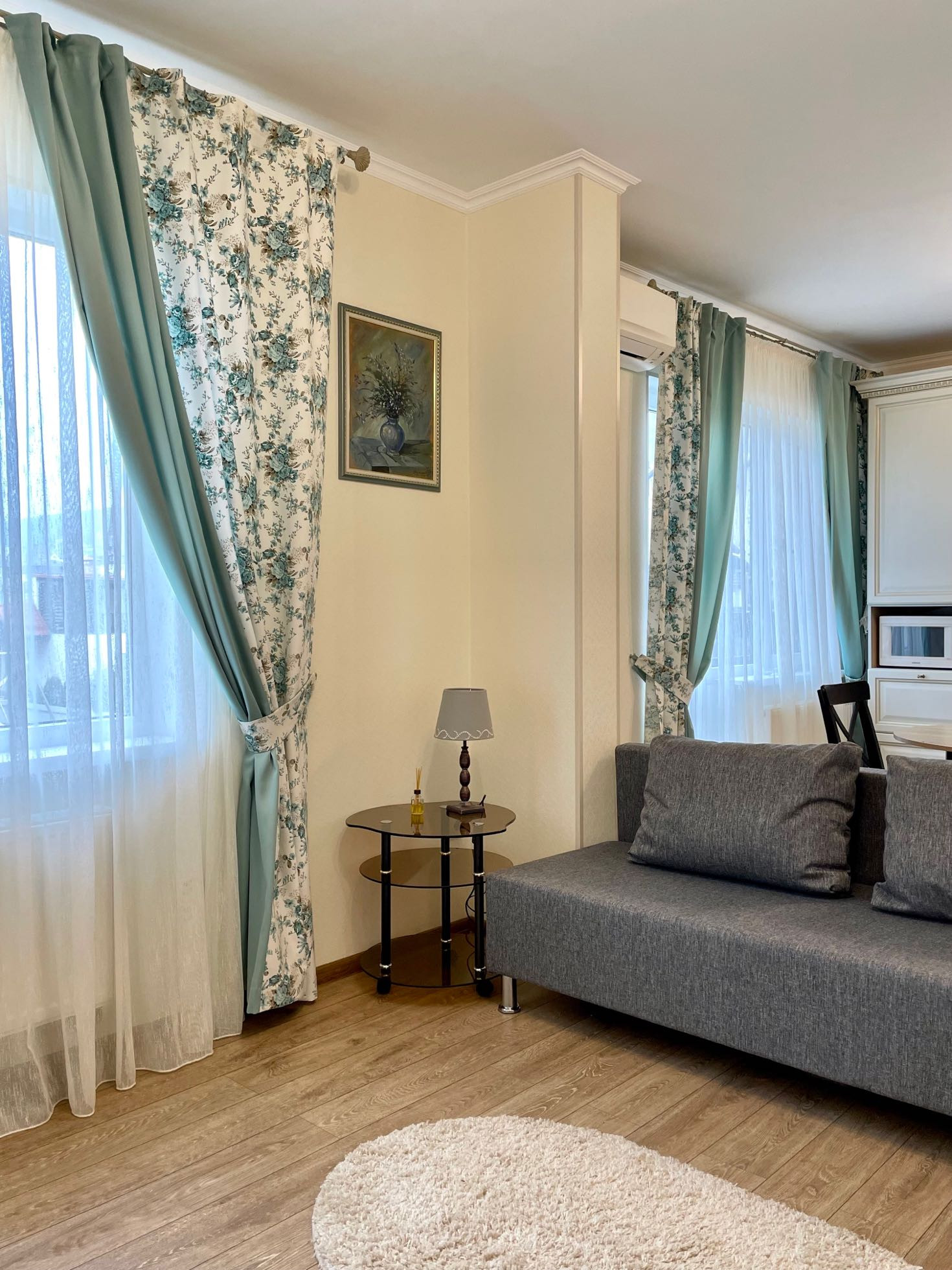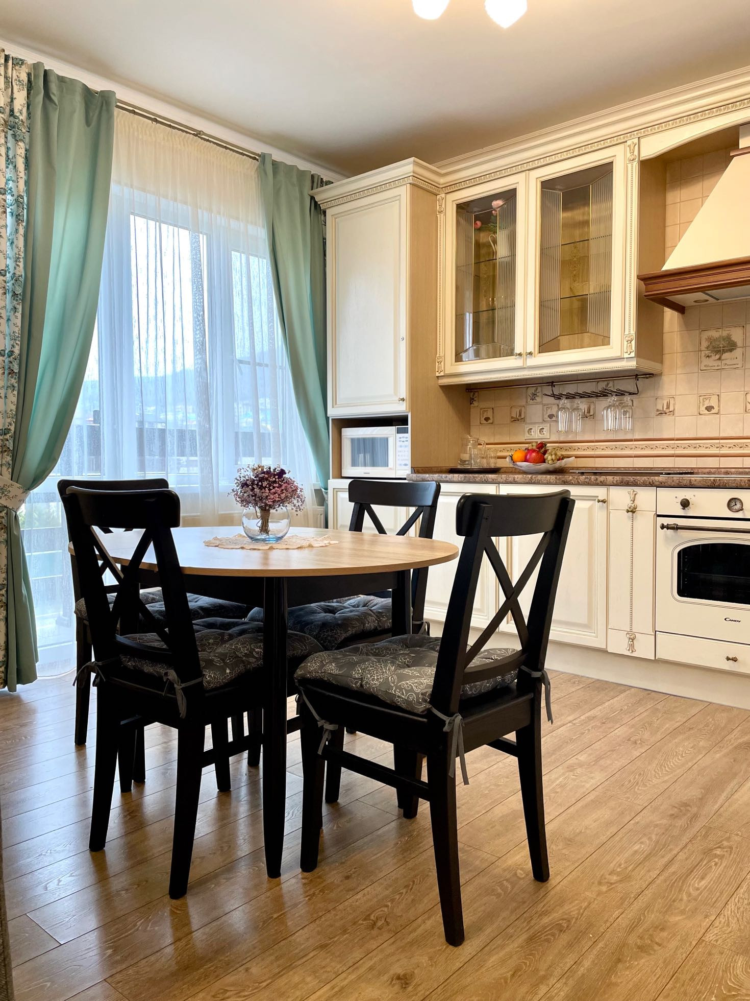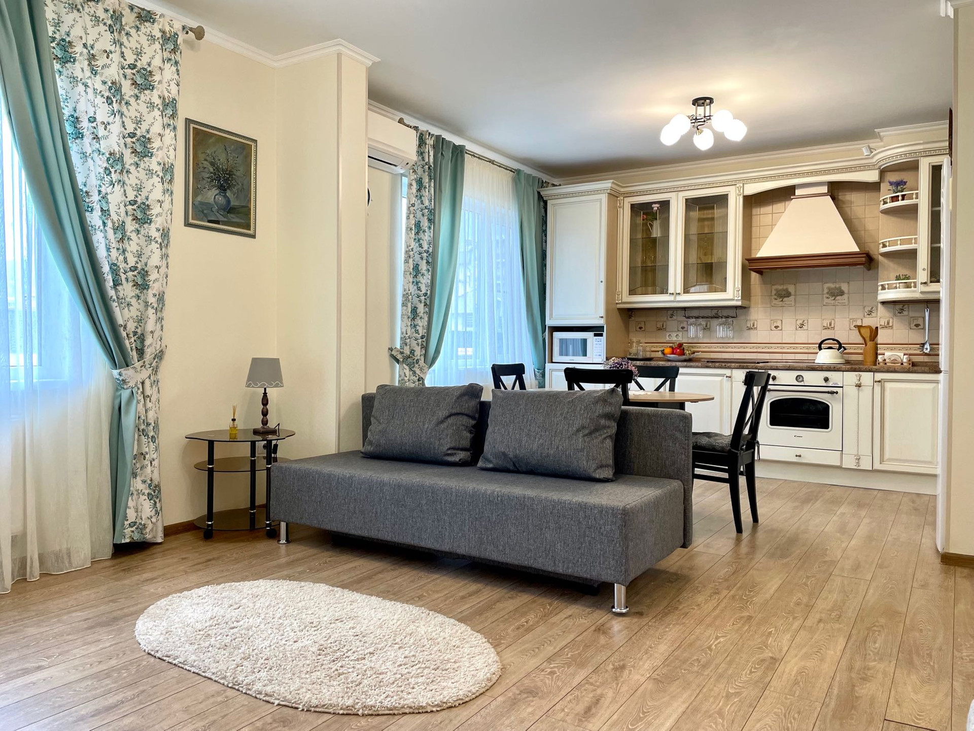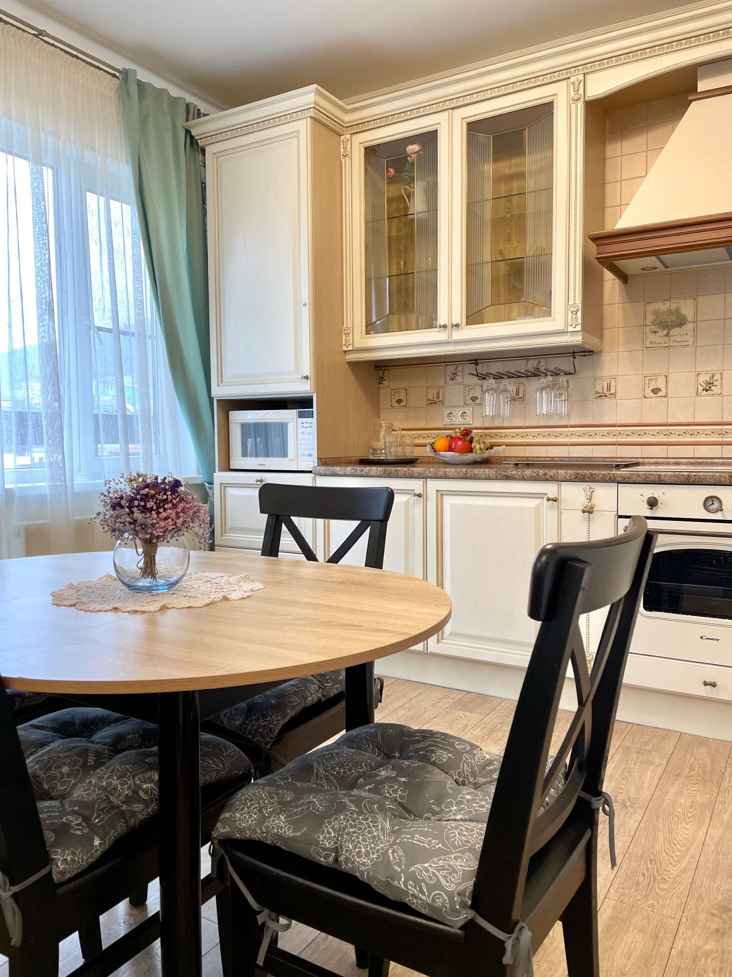 В квартире установлена сигнализация,электрический теплый пол.