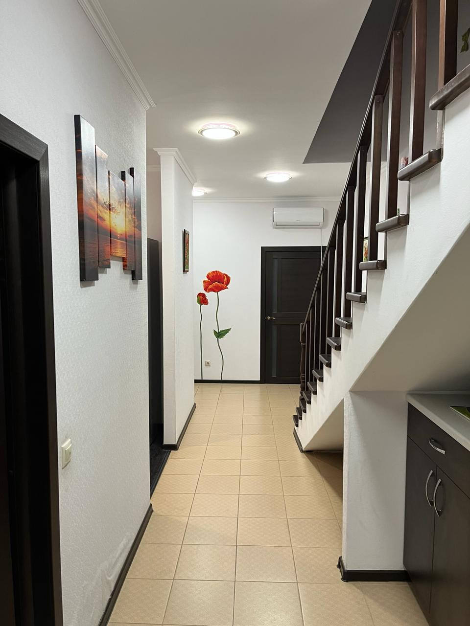 Дом вместительный, 2 этажа, площадью 150 кв. м, идеально подходит для проживания большой семьи . 2 балкона. Высокие потолки 3 м. 5 спален : 15,5 кв. м. ,12 кв. м.,10,8 кв. м.,11,4 кв. м., гостевая спальня на 1 этаже 9,9 кв. м.. В каждой спальне установлен кондиционер. Просторная гостиная 18,8 кв. м.